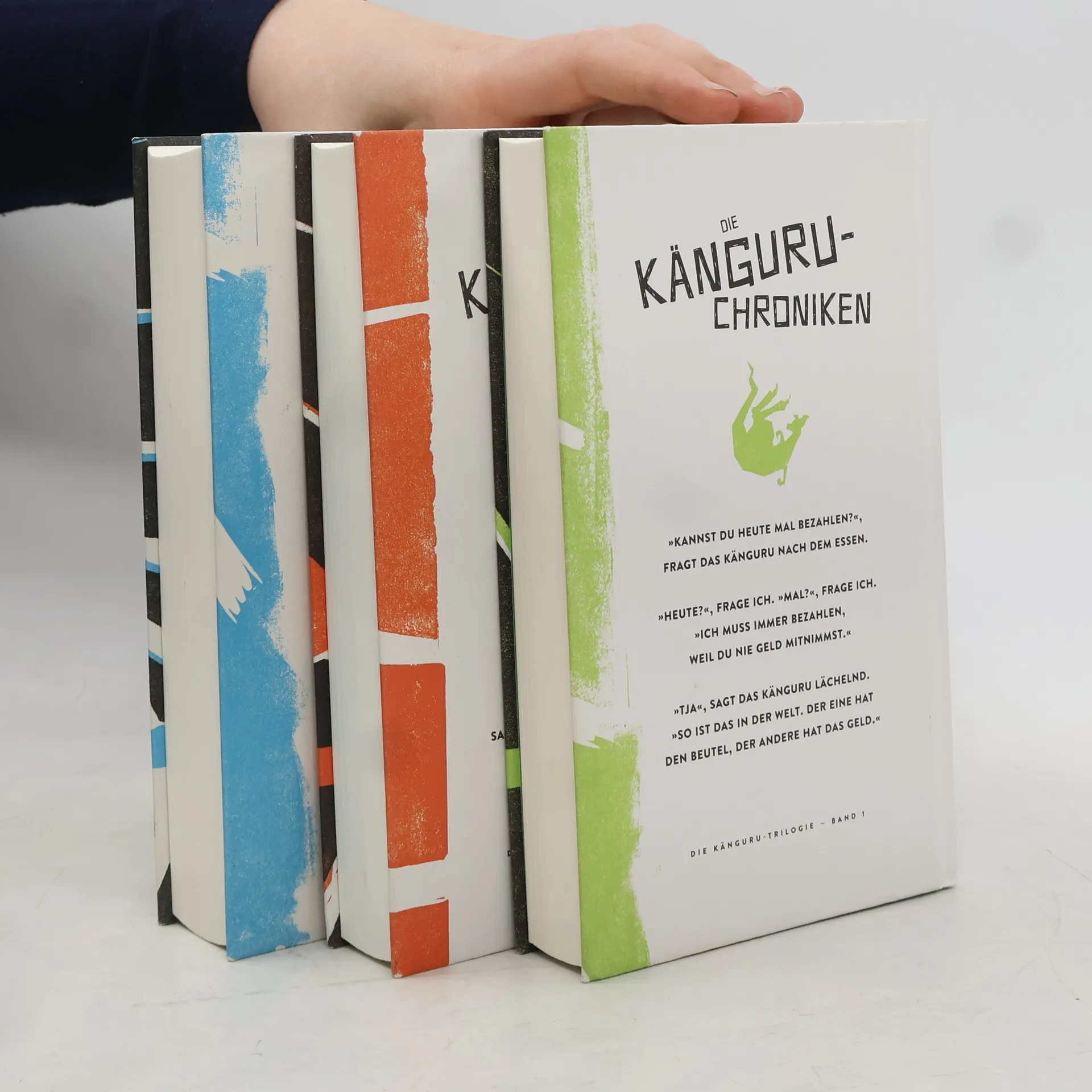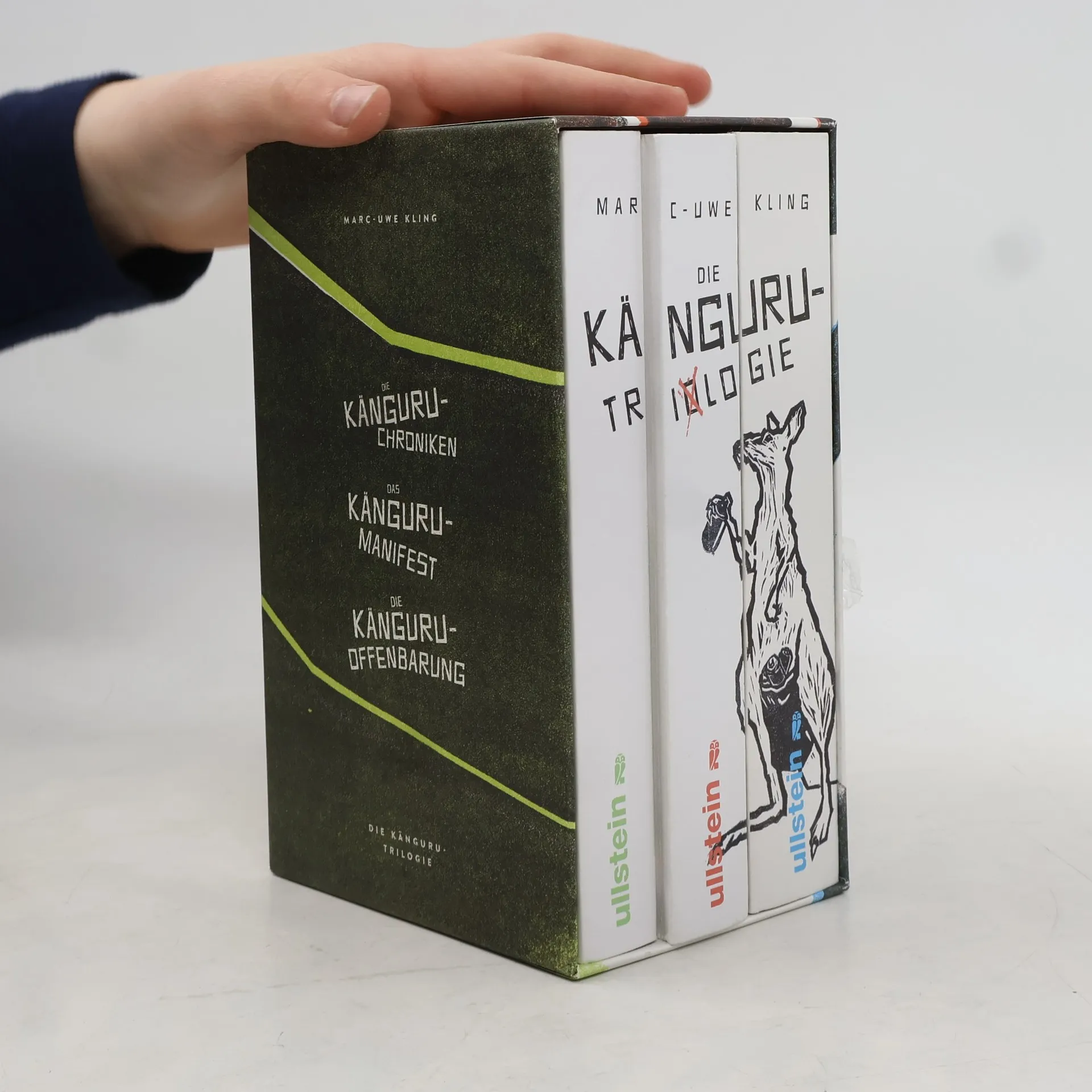 Hört, hört! Darauf hat die Gemeinde gewartet! Hier kommt der famoseste Schuber der Welt: DIE KÄNGURU-TRILOGIE! Das Angebot des Jahrhunderts: Alle drei Känguru-Bände als Prachtausgaben im schicken Schuber. Gedruckt auf feinstem Papier. Gesetzt in schönster Typographie. Gebunden in teuerstem Pappkarton. Mit neuen Bildern vorne drauf. Und das alles für sagenhafte 28 Euro!!!