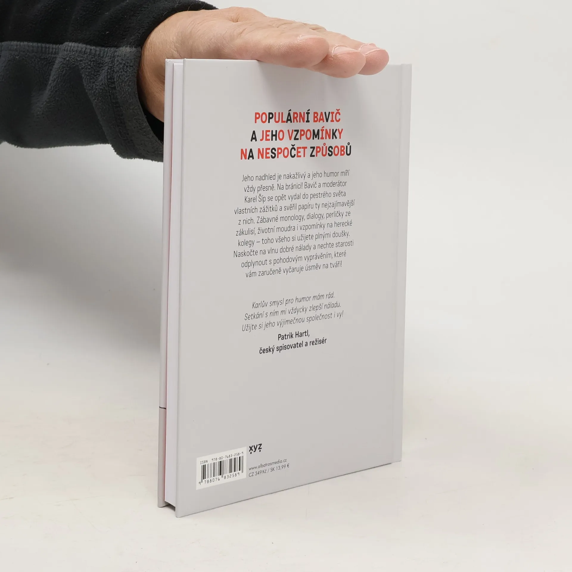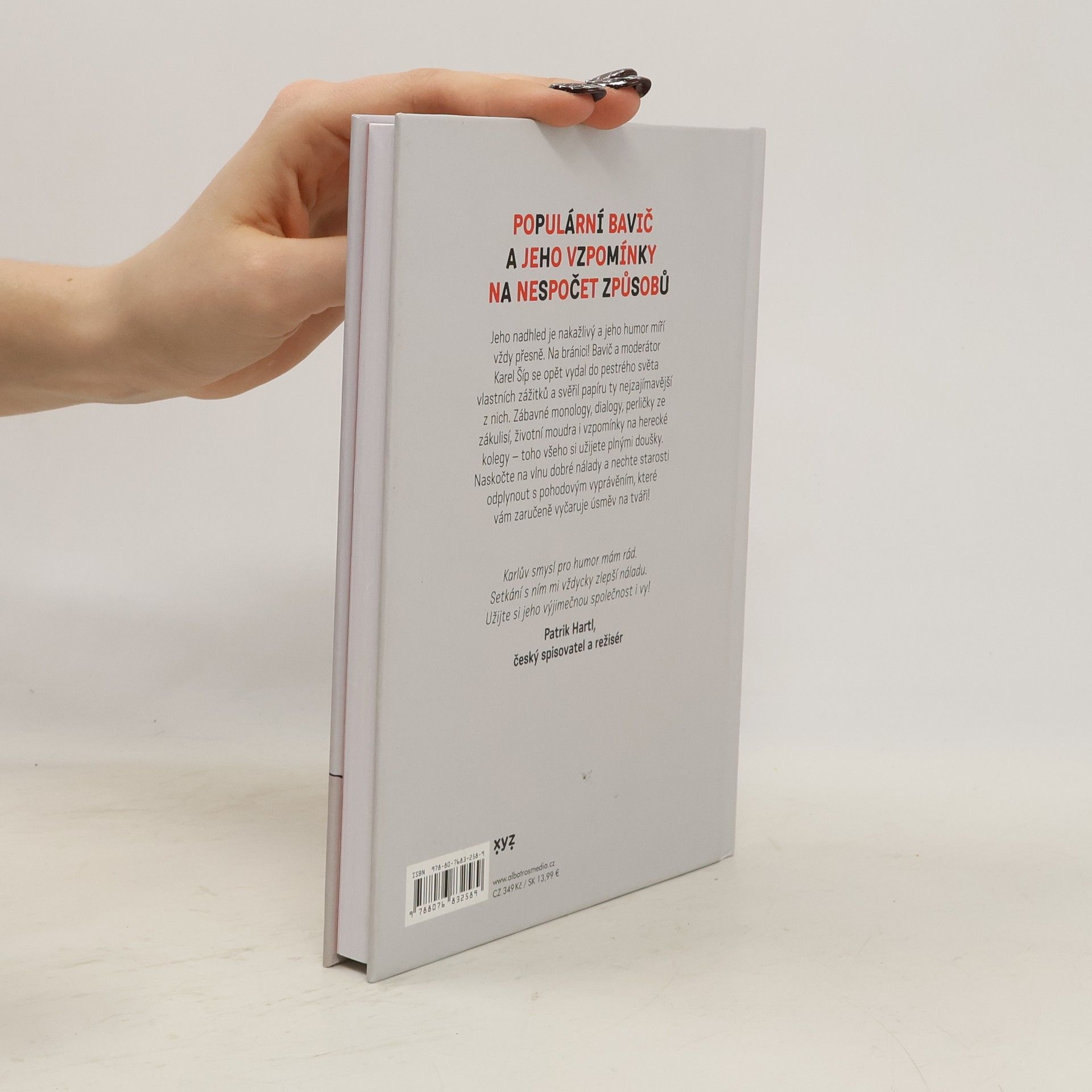 Populární bavič a jeho vzpomínky na nespočet způsobů. Jeho nadhled je nakažlivý a jeho humor míří vždy přesně. Na bránici! Bavič a moderátor Karel Šíp se opět vydal do pestrého světa vlastních zážitků a svěřil papíru ty nejzajímavější z nich. Zábavné monology, dialogy, perličky ze zákulisí, životní moudra i vzpomínky na herecké kolegy – toho všeho si užijete plnými doušky. Naskočte na vlnu dobré nálady a nechte starosti odplynout s pohodovým vyprávěním, které vám zaručeně vyčaruje úsměv na tváři!