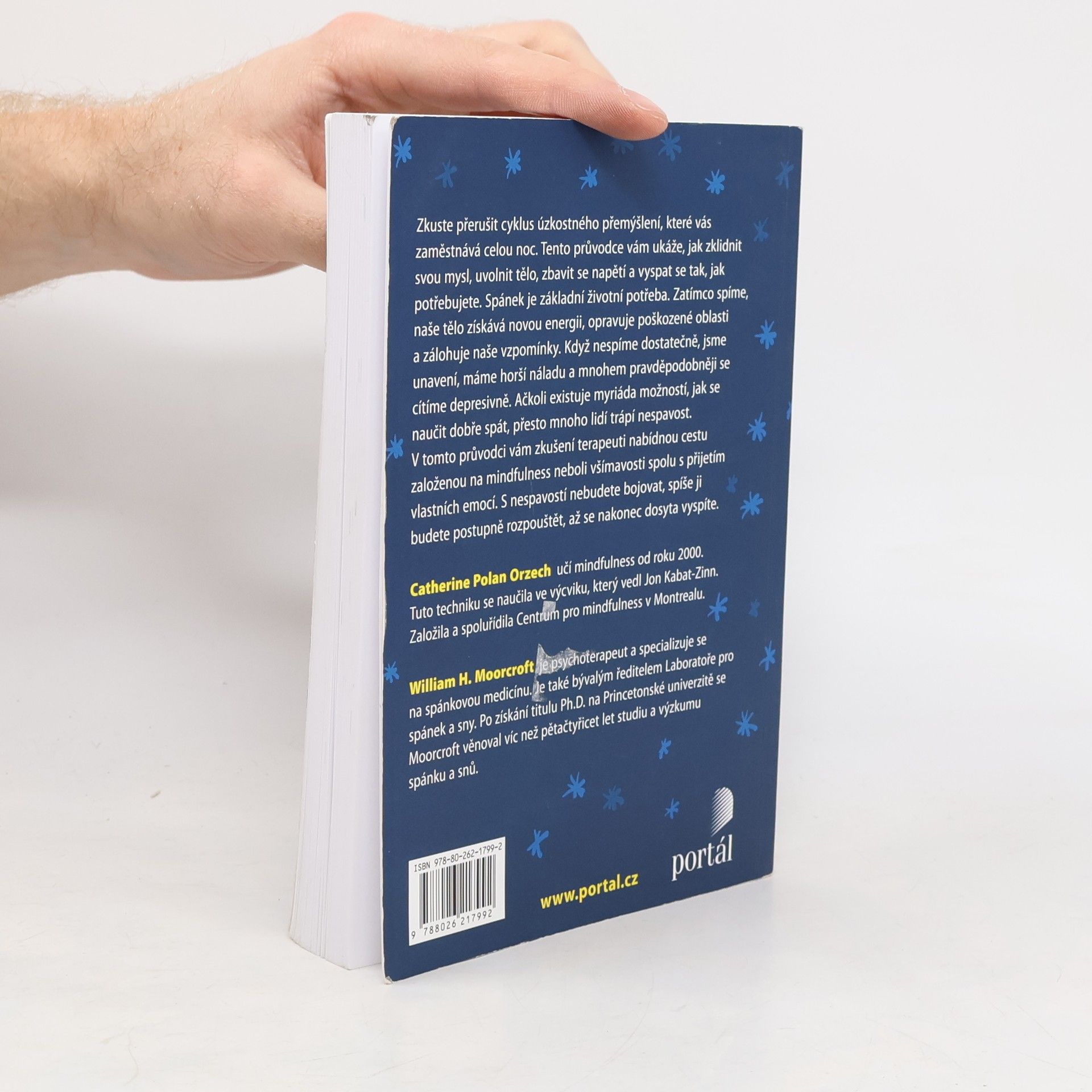 kuste přerušit cyklus úzkostného přemýšlení, které vás zaměstnává celou noc. Tento průvodce vám ukáže, jak zklidnit svou mysl, uvolnit své tělo, zbavit se napětí a vyspat se tak, jak potřebujete. Spánek je základní životní potřeba. Zatímco spíme, naše tělo získává novou energii, opravuje poškozené oblasti a zálohuje naše vzpomínky. Když nespíme dostatečně, jsme unavení, máme horší náladu a mnohem pravděpodobněji se cítíme depresivně. Ačkoli existuje myriáda možností, jak se naučit dobře spát, přesto mnoho lidí trápí nespavost. V tomto průvodci vám zkušení kognitivně-behaviorální terapeuti nabídnou cestu založenou na mindfulness neboli všímavosti spolu s přijetím vlastních emocí. S nespavostí nebudete bojovat, spíše ji budete postupně rozpouštět, až se nakonec dosyta vyspíte. Catherine Polan Orzech, učí mindfulness od roku 2000. Tuto techniku se naučila ve výcviku, který vedl Jon Kabat-Zinn. William H. Moorcroft je psychoterapeut a specializuje se na spánkovou medicínu
