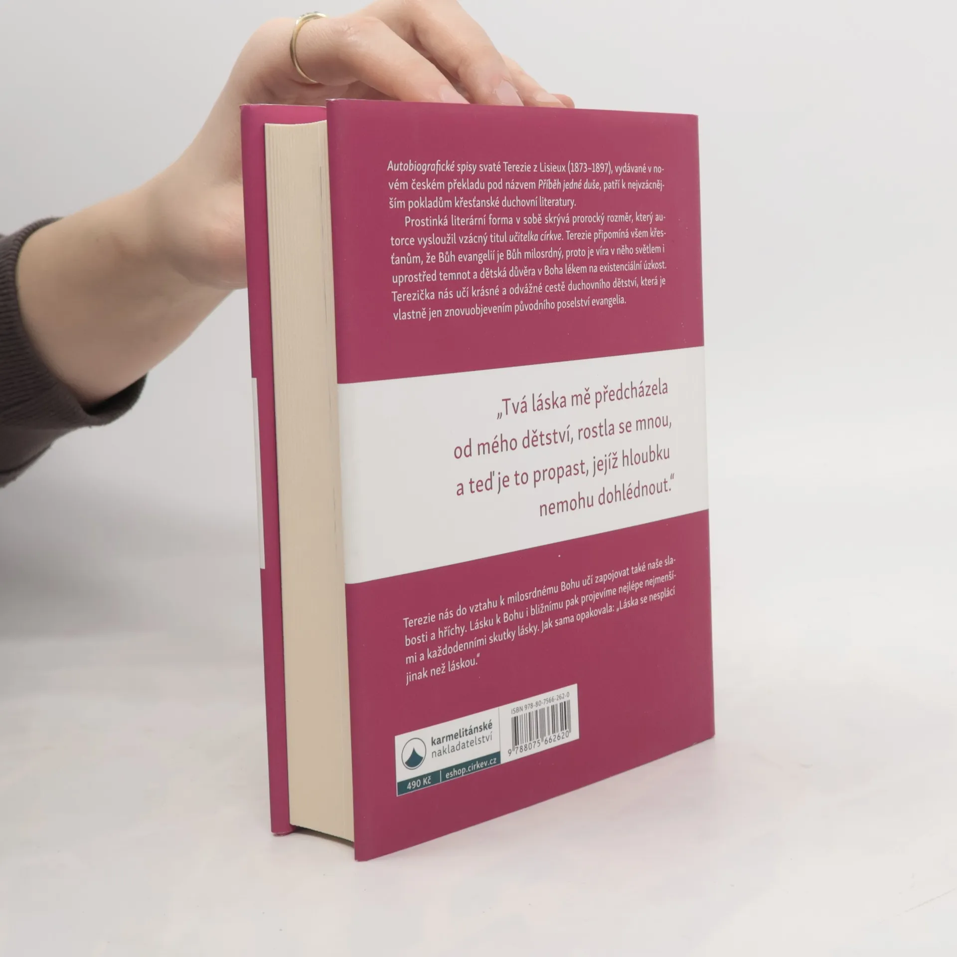 Autobiografické spisy svaté Terezie z Lisieux (1873–1897), které vydáváme v novém překladu pod názvem Příběh jedné duše, patří k nejvzácnějším pokladům křesťanské duchovní literatury. Prostinká literární forma v sobě skrývá prorocký rozměr, který autorce vysloužil vzácný titul učitelka církve. Terezie připomíná všem křesťanům, že Bůh evangelií je Bůh milosrdný, proto je víra v něho světlem i uprostřed temnot a dětská důvěra v Boha lékem na existenciální úzkost. Učí nás krásné a odvážné cestě duchovního dětství, která je vlastně jen znovuobjevením původního poselství evangelia.