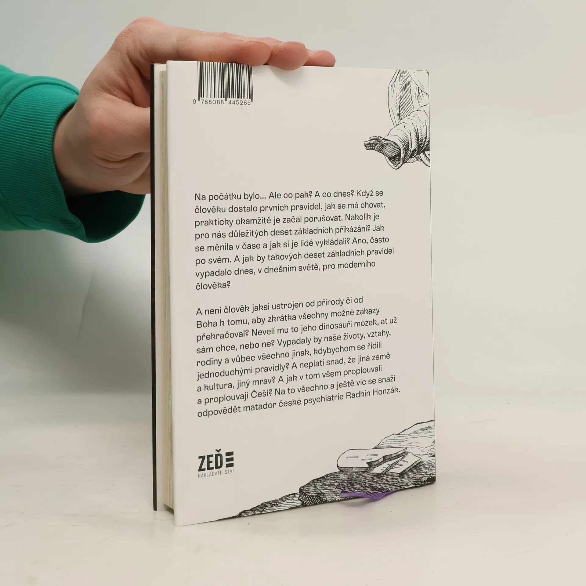 Na počátku bylo… Ale co pak? A co dnes? Když se člověku dostalo prvních pravidel, jak se má chovat, prakticky okamžitě je začal porušovat. Nakolik je pro nás důležitých deset základních přikázání? Jak se měnila v čase a jak si je lidé vykládali? Ano, často po svém. A jak by takových deset základních pravidel vypadalo dnes, v dnešním světě, pro moderního člověka? A není člověk jaksi ustrojen od přírody či od Boha k tomu, aby zkrátka všechny možné zákazy překračoval? Nevelí mu to jeho dinosauří mozek, ať už sám chce, nebo ne? Vypadaly by naše životy, vztahy, rodiny a vůbec všechno jinak, kdybychom se řídili jednoduchými pravidly? A neplatí snad, že jiná země a kultura, jiný mrav? A jak v tom všem proplouvali a proplouvají Češi? Na to všechno a ještě víc se snaží odpovědět matador české psychiatrie Radkin Honzák.