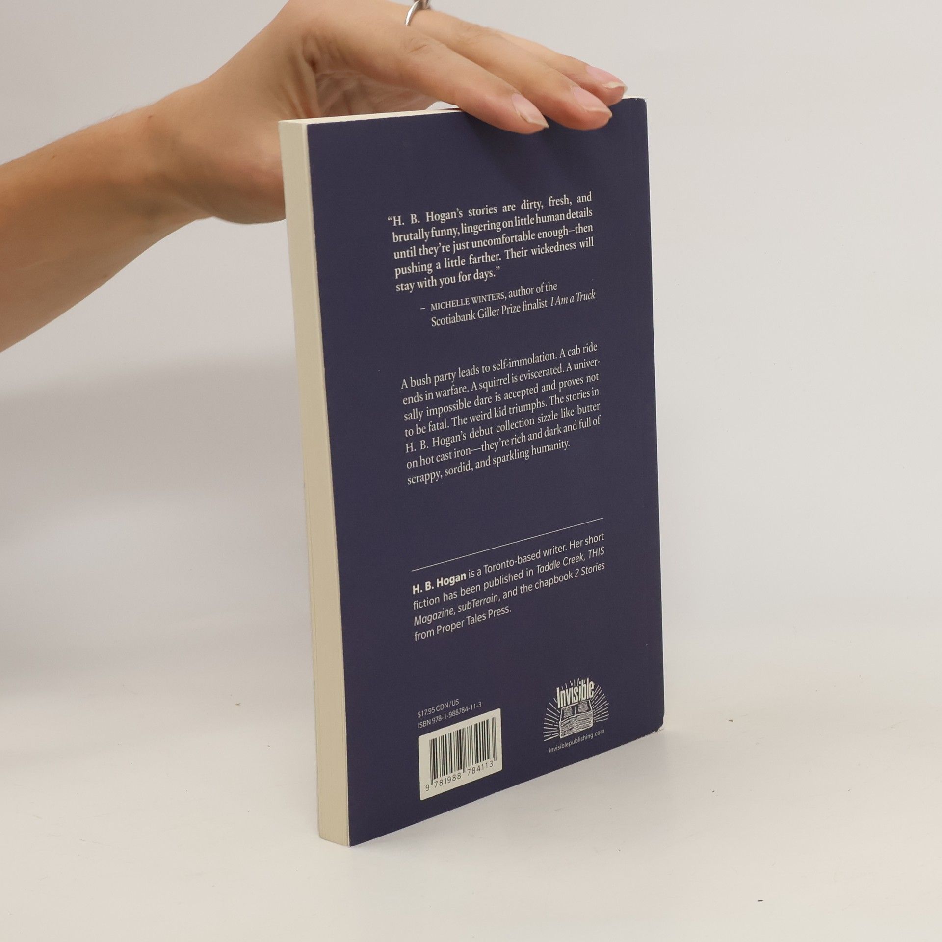 Fiction. Short Stories. A bush party leads to self-immolation. A cab ride ends in warfare. A squirrel is eviscerated. A universally impossible dare is accepted and proves not to be fatal. The weird kid triumphs. The stories in H. B. Hogan's debut collection sizzle like butter on hot cast iron--they're rich and dark and full of scrappy, sordid, and sparkling humanity. "In her darkly entertaining debut collection, H.B. Hogan brings us tales of people who find themselves on the wrong side of the social divide."--Toronto Star "H. B. Hogan's stories are dirty, fresh, and brutally funny, lingering on little human details until they're just uncomfortable enough--then pushing a little farther. Their wickedness will stay with you for days."--Michelle Winters "What I love most about these stories is the many ways that redemption is made completely absurd, as if to point out how rare and how tenuous moments of self-fulfillment really are. I want to avoid spoilers but I'll just say that it's not often that a story makes me gasp in shock and burst out laughing in a single paragraph."--Claire Farley