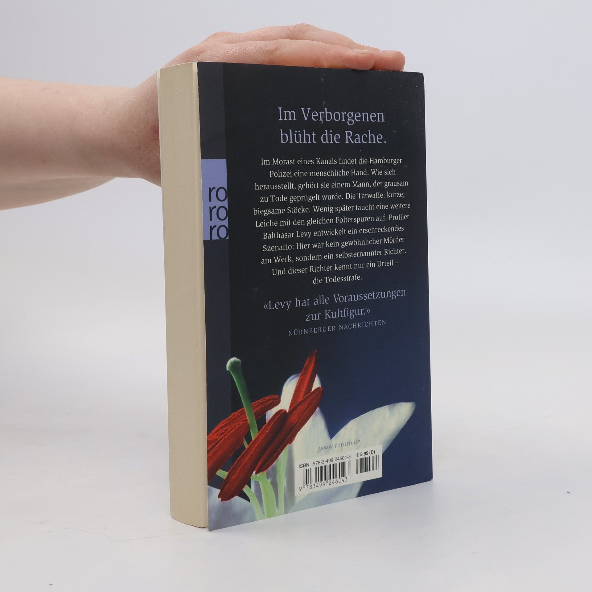 Im Verborgenen blüht die Rache.Im Morast eines Kanals findet die Hamburger Polizei eine menschliche Hand. Wie sich herausstellt, gehört sie einem Mann, der grausam zu Tode geprügelt wurde. Die Tatwaffe: kurze, biegsame Stöcke. Wenig später taucht eine weitere Leiche mit den gleichen Folterspuren auf. Profiler Balthasar Levy entwickelt ein erschreckendes Szenario: Hier war kein gewöhnlicher Mörder am Werk, sondern ein selbsternannter Richter. Und dieser Richter kennt nur ein Urteil – die Todesstrafe.