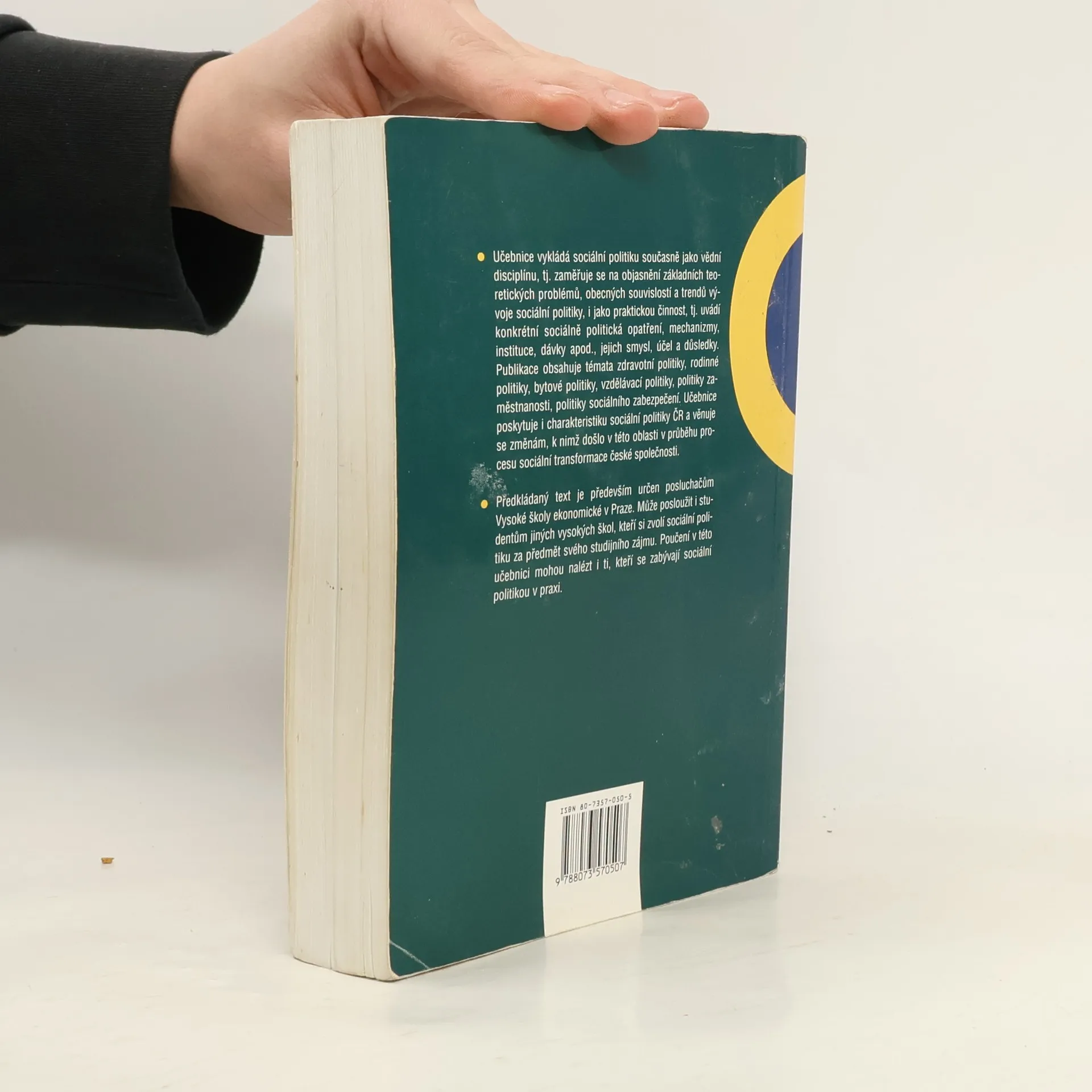 Učebnice se věnuje jednak teoretickým otázkám sociální politiky,tj. těm, které se zabývají převážně zkoumáním procesů tvorby a realizace sociální politiky v rámci společenského systému, a jednak jednotlivým dílčím sociálním politikám, jejím konkrétním opatřením, zejména jejich smyslu a důsledkům pro životní podmínky jedinců a sociálních skupin a pro celkovou prosperitu společnosti. Obsahuje proto témata politiky sociálního zabezpečení, zdravotní a vzdálávací politiky, rodinné a bytové politiky, chudoby a sociálního vyloučení. Již páté vydání této úspěšné knihy usiluje o zachycení moderních přístupů ve formování sociální politiky (zaměřuje se na to, co se označuje jako sociální kapitál"), ukazuje na nezbytnost provedení významných reforem ve všech jejích oblastech. Učebnice samozřejmě poskytuje v účelné míře i aktuální poznatky o současných sociálněpolitických opatřeních v ČR.