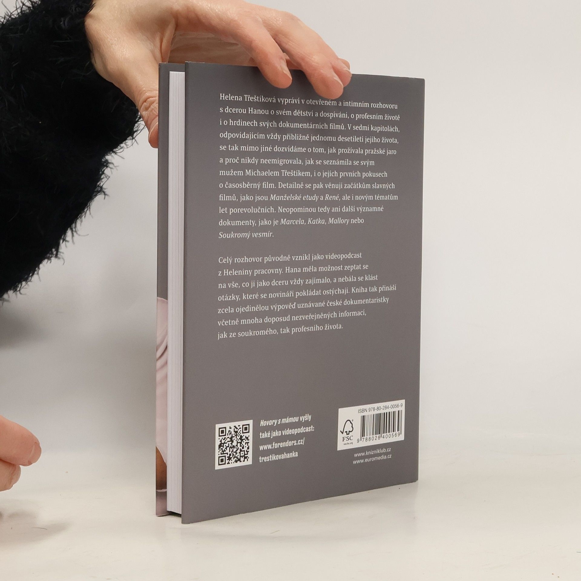 Helena Třeštíková vypráví v otevřeném a intimním rozhovoru s dcerou Hanou o svém dětství a dospívání, profesním životě i o hrdinech svých dokumentárních filmů. V sedmi kapitolách odpovídajícím vždy přibližně jednomu desetiletí jejího života se tak mimo jiné dozvídáme o tom, jakprožívala pražské jaro a proč nikdy neemigrovala, jak se seznámila se svým mužem Michaelem Třeštíkem i o jejích prvních pokusech o časosběrný film. Detailně se pak věnují začátkům slavných filmů, jako jsou Manželské etudy a René, ale i novým tématům let porevolučních. Neopominou tedy ani další významné dokumenty, jako je Marcela, Katka, Mallory nebo Soukromý vesmír. Celý rozhovor původně vznikl jako videopodcast z Heleniny pracovny. Hana měla možnost zeptat se na vše, co ji jako dceru vždy zajímalo, a nebála se klást otázky, které se novináři pokládat ostýchají. Kniha tak přináší zcela ojedinělou výpověď uznávané české dokumentaristky včetně mnoha doposud nezveřejněných informací jak ze soukromého, tak profesního života.