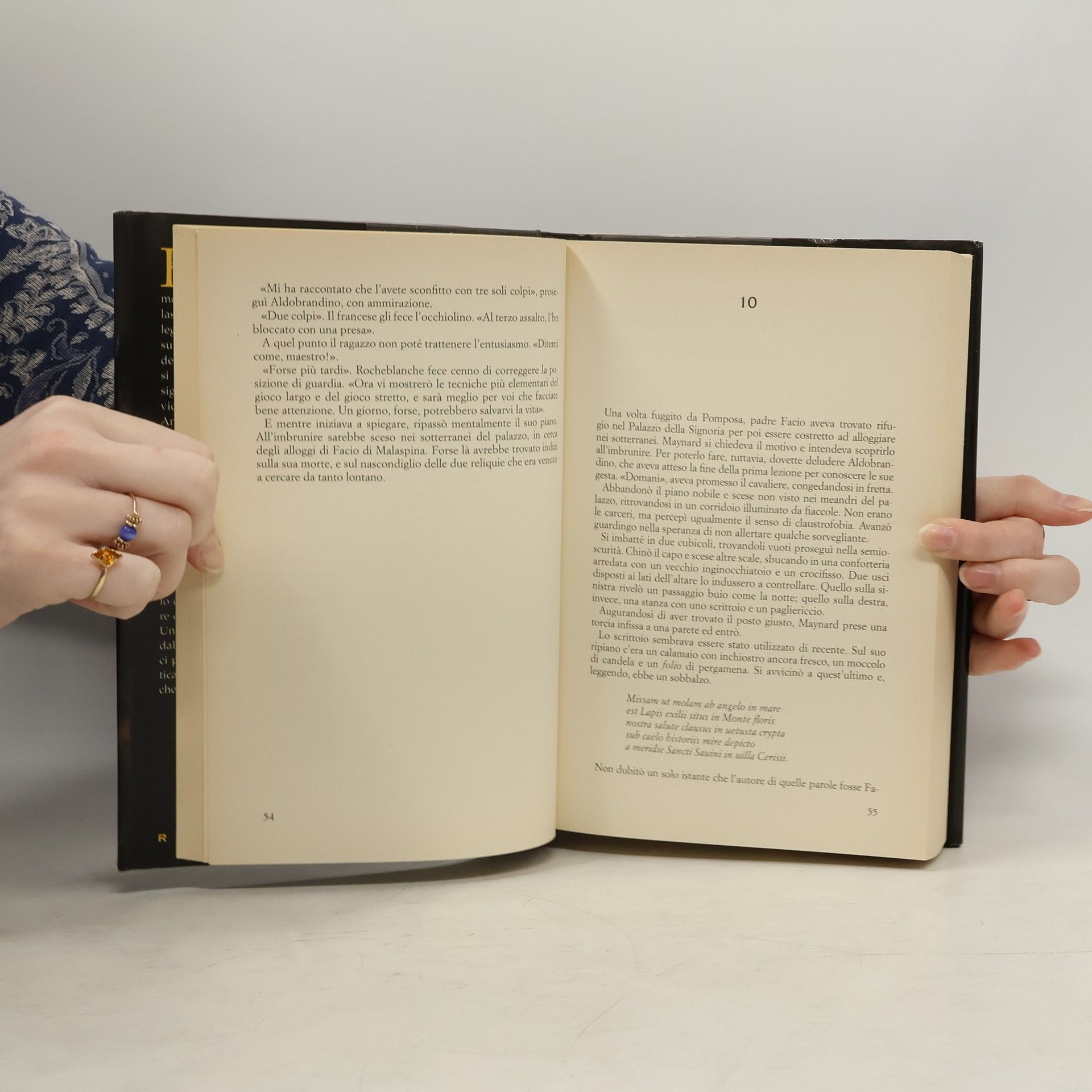 Ferrara, 1347. Il cavaliere Maynard de Rocheblanche sta indagando sulla truce morte del monaco Facio di Malaspina, collegata alla ricerca del leggendario "Lapis exilii". Per far luce sulla vicenda, Maynard deve accedere alla corte estense e guadagnarsi la fiducia del marchese Obizzo, signore di Ferrara. Intanto, nella vicina abbazia di Pomposa, l'abate Andrea assiste impotente alla fuga del suo protetto, il giovane miniaturista Gualtiero de' Bruni, diretto ad Avignone con la speranza di ritrovare la madre. Ma l'inaspettato dilagare della peste nera ..