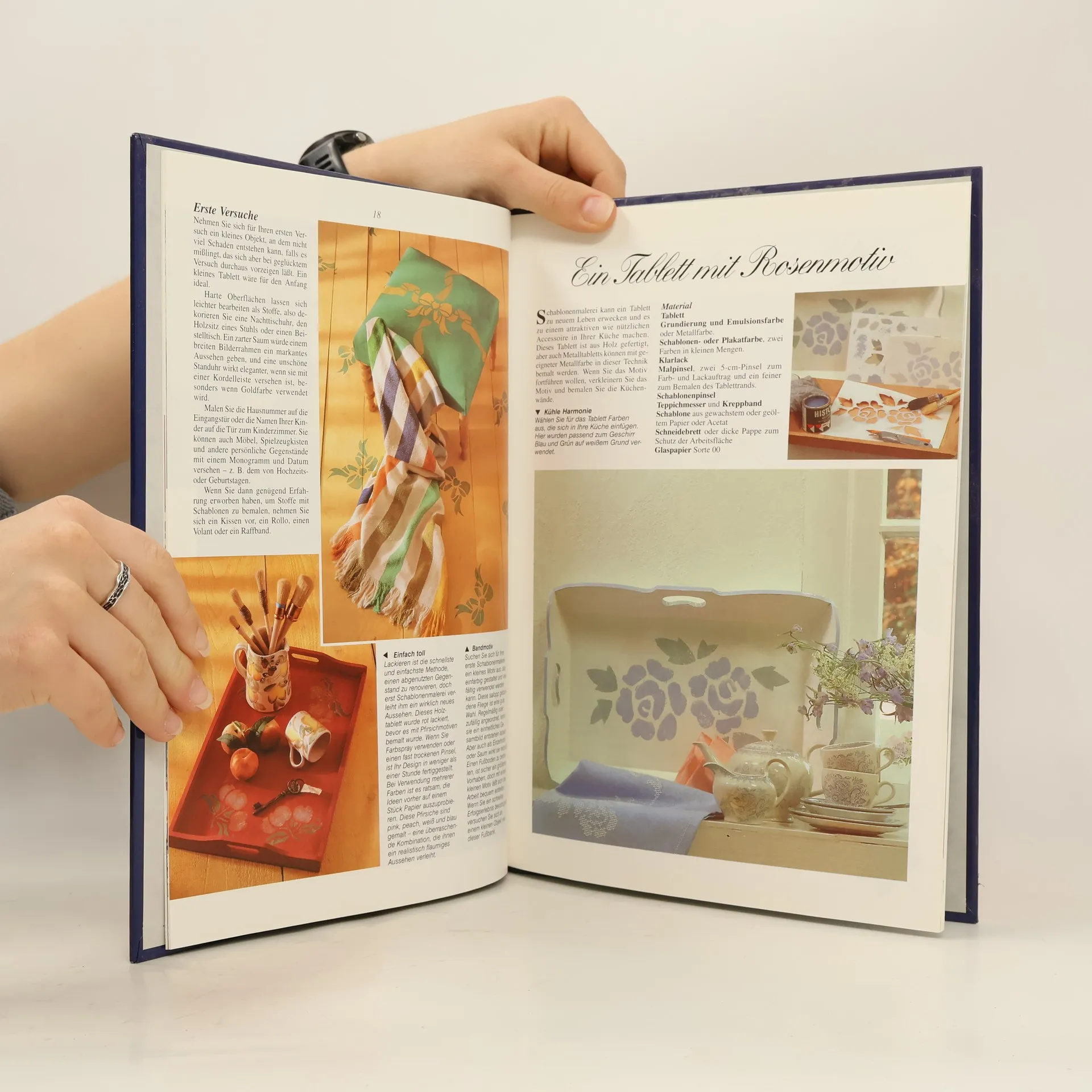 Gut illustrierte Anleitung zum Schablonieren auf Holz, Kunststoff, Keramik, Stoff, Glas, gestrichenen und tapezierten Wänden.