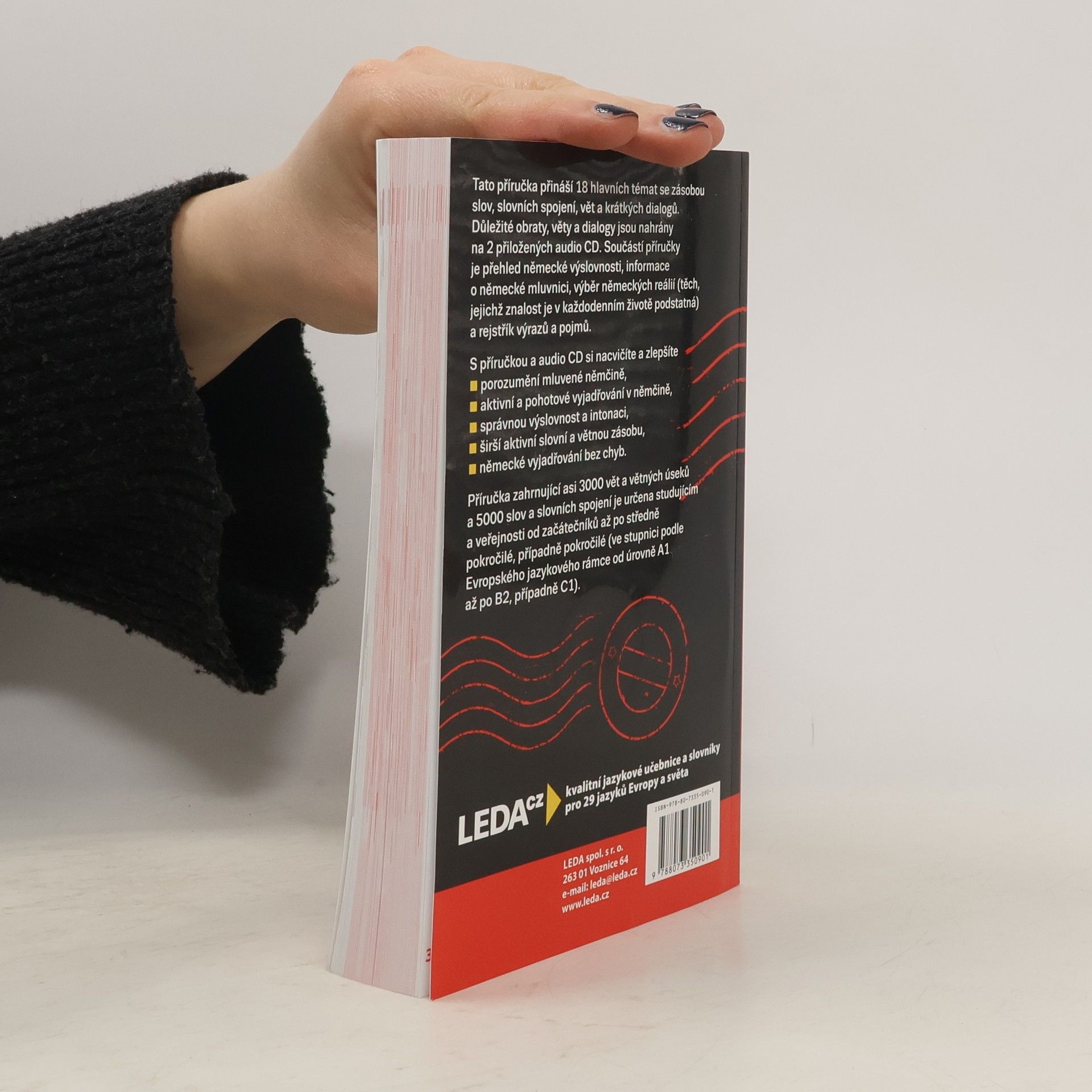 Příručka obsahuje 18 kapitol, které pokrývají všechny základní tematické okruhy z oblasti běžného styku s cizinci, ať už turistického, společenského nebo obchodního. Osvojit si z ní můžete celkem asi 3000 vět a větných úseků a 5000 slov a slovních spojení. Příručka je určena jako pomocný materiál pro výuku jazyka, využijete ji ovšem i k okamžité přípravě na setkání s cizinci a také během pobytu v cizině. Předpokládá se pouze základní znalost gramatiky, jejíž stručný přehled spolu s přehledem výslovnosti se nachází v úvodní části příručky. S publikací můžete pracovat buď zcela systematiky, nebo si zvolíte téma podle okamžité potřeby. Práci s knihou usnadňuje barevná grafická úprava, snadné vyhledávání umožňuje rejstřík, který příručku uzavírá. Učebnice je určena studentům v kurzech a na školách, ale i samoukům. Ve stupnici podle Evropského jazykového rámce ji doporučujeme zájemcům od úrovně A1 (začátečníci) až po B2 (středně pokročilí).