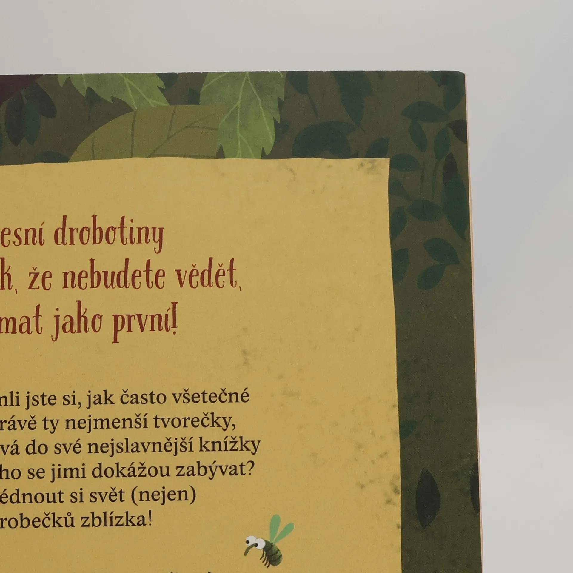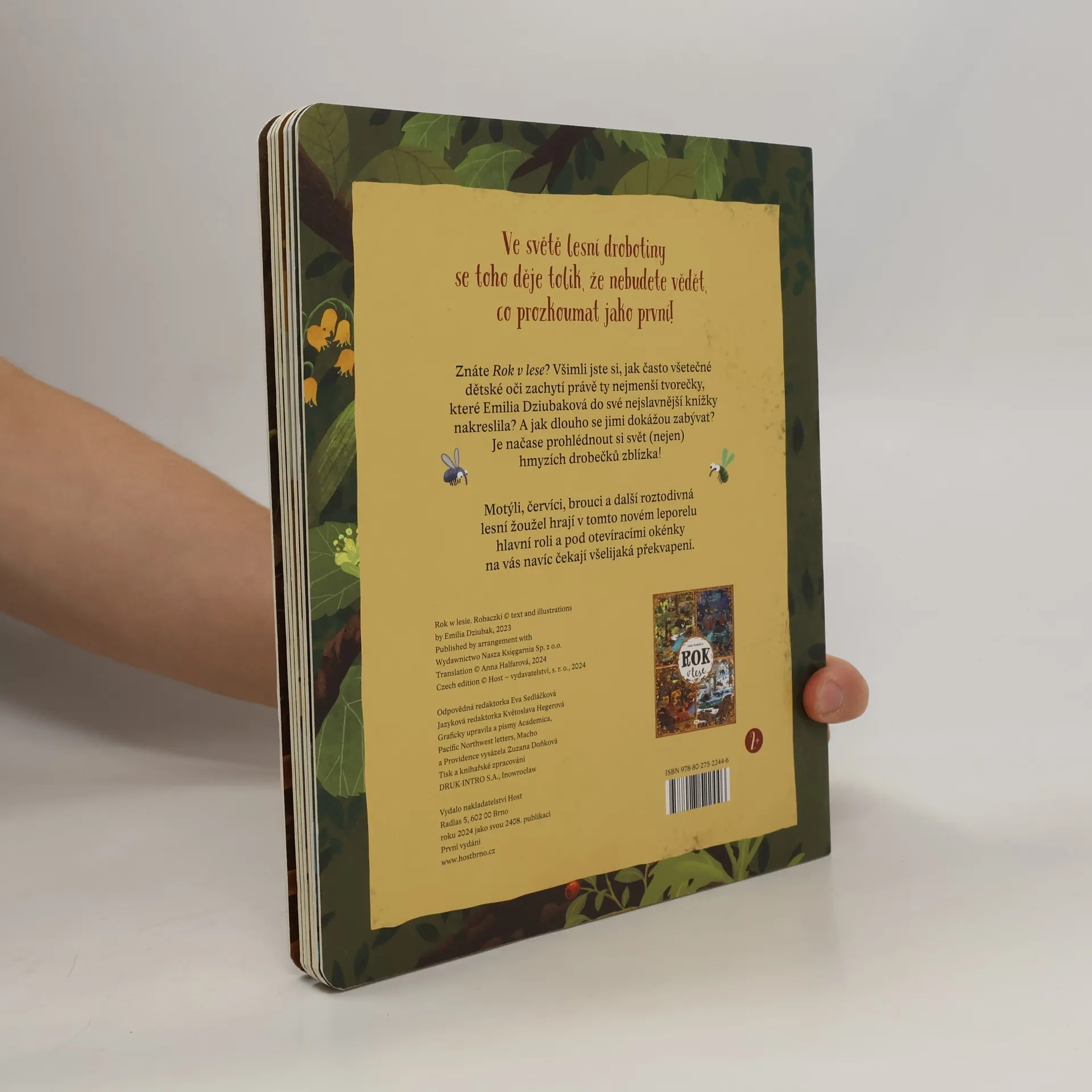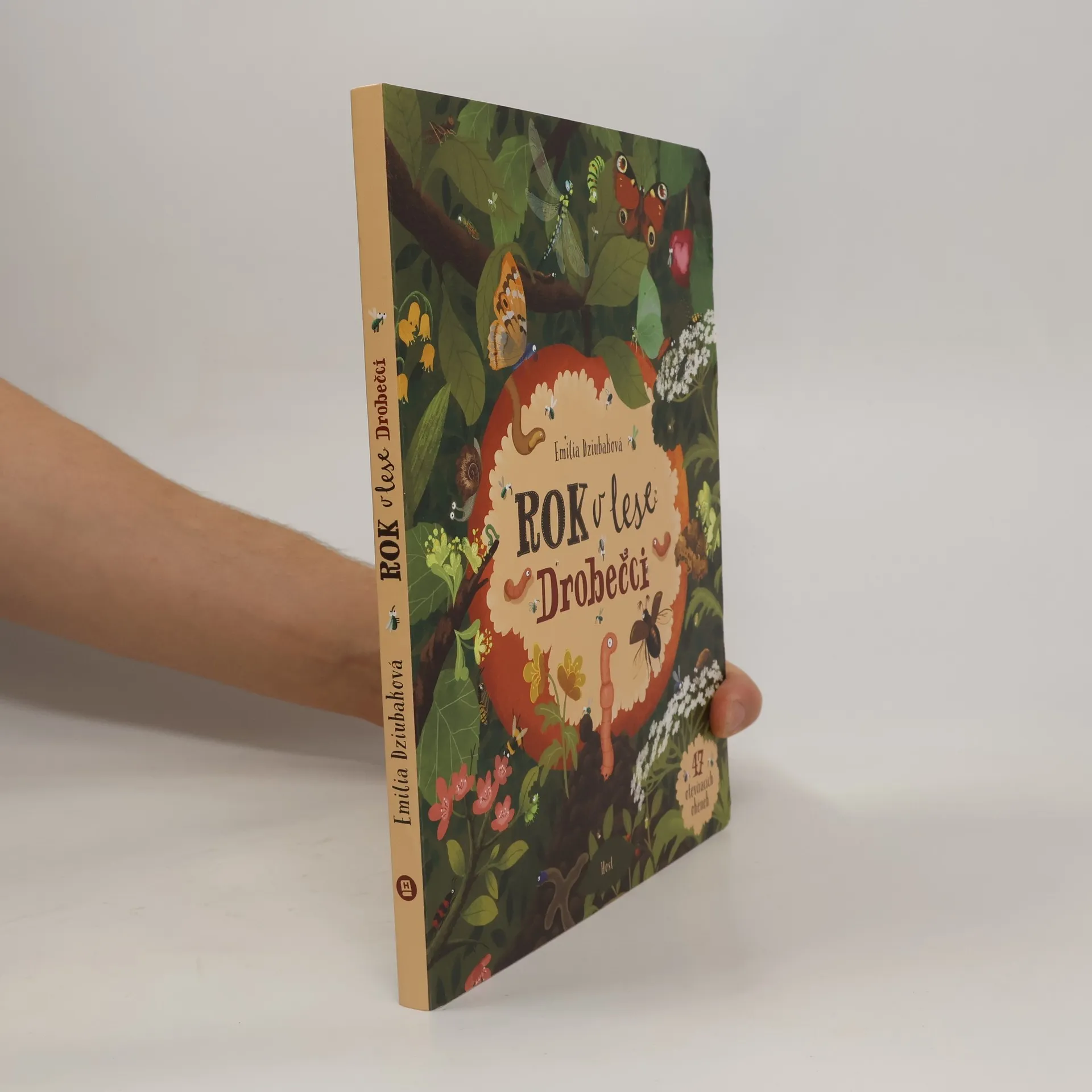 Pokračování oblíbené hledací knížky vezme děti na výpravu do (nejen) hmyzího světa! Znáte leporelo Rok v lese? Všimli jste si, jak často pozorné dětské oči zachytí právě ty nejmenší tvorečky, které Emilia Dziubaková do své nejslavnější knížky nakreslila? A jak dlouho se všemi těmi mouchami, pavouky, brouky a všelijakou další lesní žouželí dokážou zabývat? Je načase prohlédnout si svět lesních drobečků zblízka. Díky odklápěcím okénkům objevíte spoustu zajímavých i vtipných detailů. Nahlédnete do mraveniště, pod kůru stromu i do rafinovaného úkrytu larvy mravkolva. Navštívíte myslivcovu hájovnu, kde se to nezvanými hosty jen hemží. Zjistíte, jak se z kukly stává motýl, co má za lubem pijavice nebo jaké lumpárny provádějí všudypřítomné mouchy. Ve světě lesní drobotiny se toho děje tolik, že se knihou zabavíte na celé hodiny!