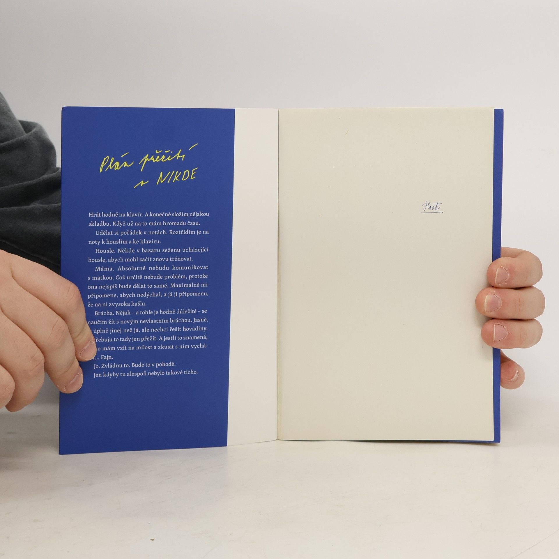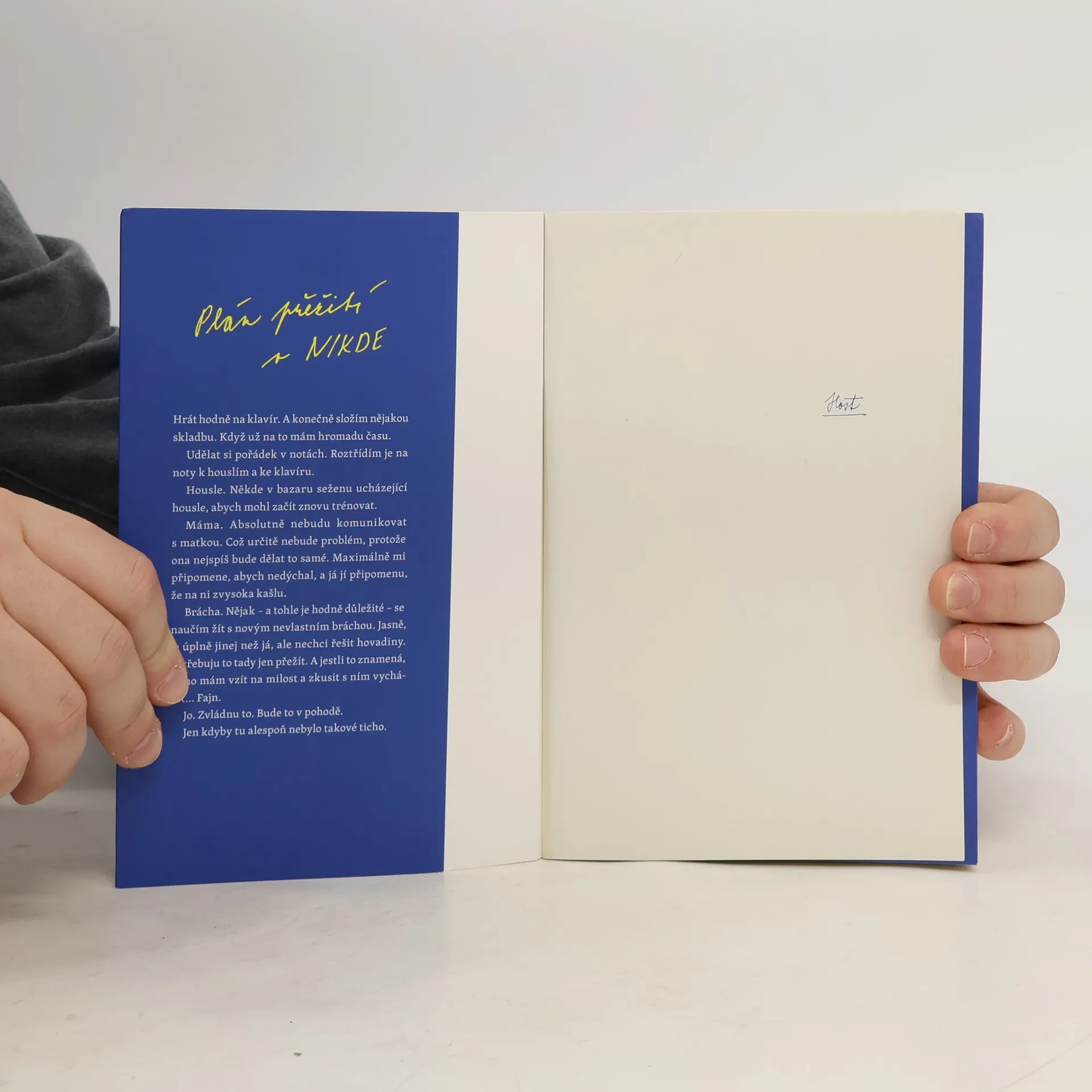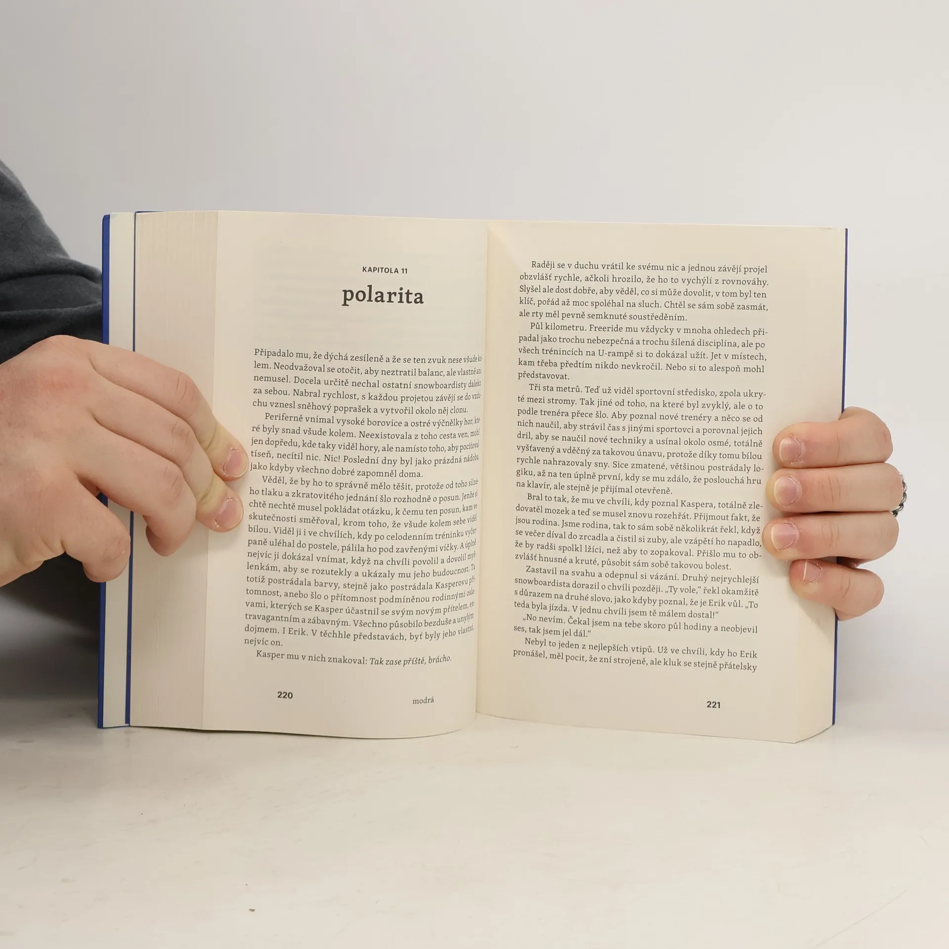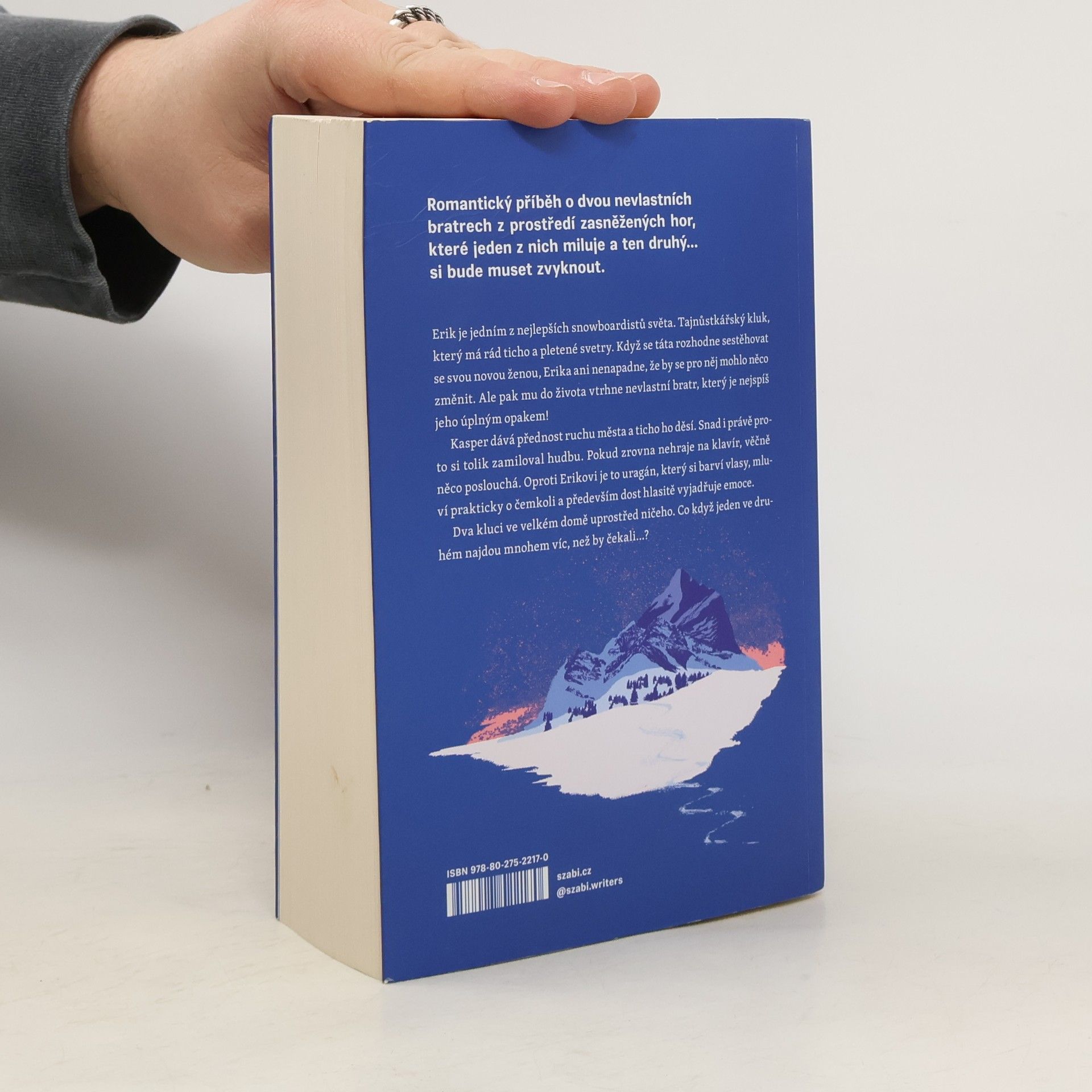 Romantický příběh o dvou nevlastních bratrech z prostředí zasněžených hor, které jeden z nich miluje a ten druhý... si bude muset zvyknout... Erik je jedním z nejlepších snowboardistů světa. Ale taky tajnůstkářský kluk, který má rád ticho a pletené svetry. Když se jeho táta rozhodne sestěhovat se svou novou ženou, Erika ani nenapadne, že by se pro něj mohlo něco změnit. Jenže pak mu do života vtrhne nevlastní bratr, který je nejspíš jeho úplným opakem! Kasper dává přednost ruchu města a ticho ho děsí. Snad i právě proto si tolik zamiloval hudbu. Pokud zrovna nehraje na klavír, věčně něco poslouchá. Oproti Erikovi je to uragán, který si barví vlasy, mluví prakticky o čemkoli a především dost hlasitě vyjadřuje emoce. Dva kluci ve velkém domě uprostřed ničeho. Dva rozdílné světy. Co když jeden ve druhém najdou mnohem víc, než by čekali...? Nakladatelská anotace.