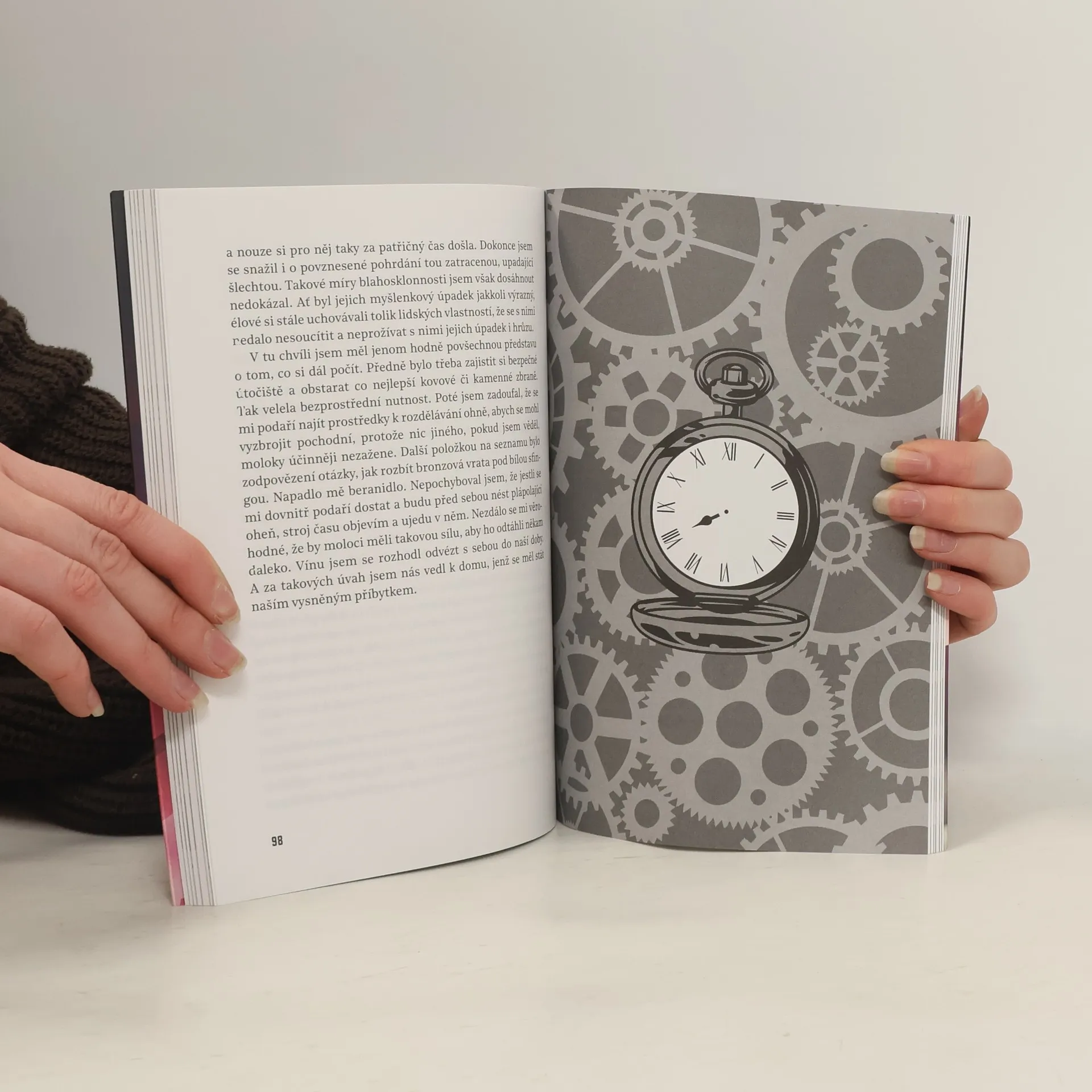 Tohle je moment, kdy se začalo odvíjet klubko podivuhodných událostí: slavnostní večeře v domě bohatého vynálezce posedlého svými výzkumy. V těch chvílích spatří světlo světa fantaskně romantický, místy děsivý, úžasný a strnulým rozumem neproniknutelný vynálezcův příběh – neuvěřitelné dobrodružství novodobého Gullivera odehrávající se v buducnosti vzdálené statisíce let. Ale nejen to: zároveň se zrodí první kniha popularizující pojem cestování v čase, a také jedna z prvních knížek přinášejících fanouškům beletrie žánr sci-fi. Když vynálezce zabrzdí svůj stroj v Londýně na prahu 8028. století, bohužel ho nevítá krásný nový svět hemžící se nevídanými výdobytky vědy i techniky a prodchnutý všeobjímajícím humanismem. Z všemocného lidstva, jež si slibovalo „zlatý věk“, zbyly jen roztříštěné houfy človíčků tělesně i duševně připomínajících děti, které se v polorozpadlých zříceninách děsí tmy a každého šramotu v ní… Jde dodnes o jeden z nejpůsobivějších a nejvlivnějších románů sci-fi, jaké byly kdy napsány, román zároveň napojený na vývojovou linii varovně pochmurných utopických děl, jež zachycují lidstvo, Zemi a dokonce snad celý vesmír ve stavu pokročilého úpadku a návratu k primitivnímu způsobu života. Kudy se vydáme, aby k tomuhle vývoji nedošlo?