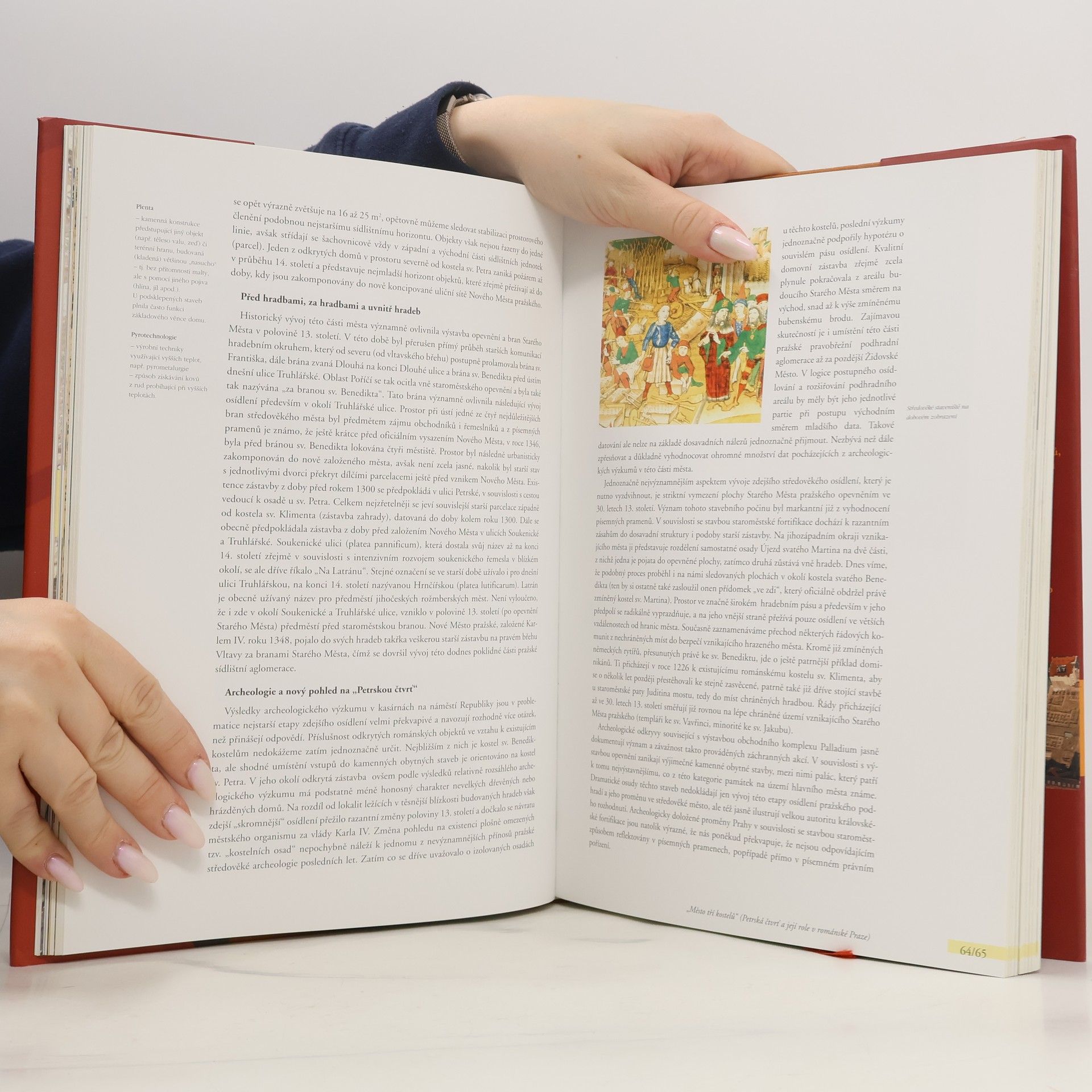 Výsledky největšího plošného odkryvu historického centra města v dějinách české archeologie. První část publikace se věnuje nově objeveným fragmentům původní románské zástavby na území Petrské čtvrti. V knize se nachází popis vykopávek středověkých objektů a charakteristika předpokládaného původního vzhledu těchto staveb. Autoři také zveřejňují nové poznatky o charakteru zdejšího středověkého osídlení, které vyplynuly z těchto archeologických průzkumů. Text doplňují nákresy půdorysů, fotografie nálezů, vyobrazení pravděpodobného vzhledu domů a schemata osídlení. V druhé části knihy autoři na základě výsledků studia hmotných nálezů a písemných pramenů přibližují životní styl zdejších měšťanů ve středověku i novověku. Dozvíme se také zajímavé informace o kapucínském klášteře u sv. Josefa a o pozdějších kasárnách.