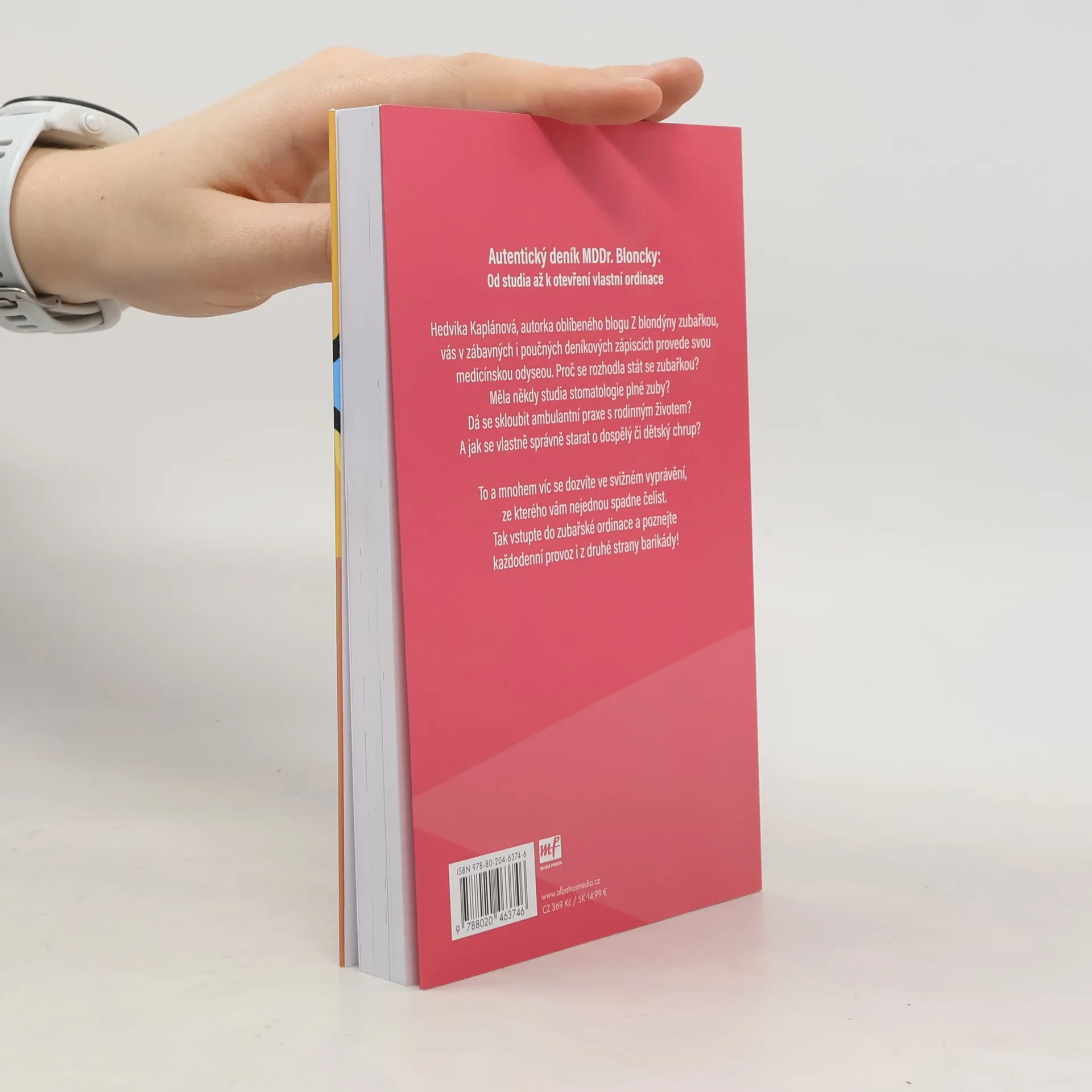 Autentický deník MDDr. Bloncky: od studia až k otevření vlastní ordinace. Hedvika Kaplánová, autorka oblíbeného blogu Z blondýny zubařkou, vás v zábavných i poučných deníkových zápiscích provede svou medicínskou odyseou. Proč se rozhodla stát zubařkou? Měla někdy studia stomatologie plné zuby? Dá se skloubit ambulantní praxe s rodinným životem? A jak se vlastně správně starat o dospělý či dětský chrup? To a mnohem víc se dozvíte ve svižném vyprávění, ze kterého vám nejednou spadne čelist. Tak vstupte do zubařské ordinace a poznejte každodenní provoz i z druhé strany barikády! Nakladatelská anotace.