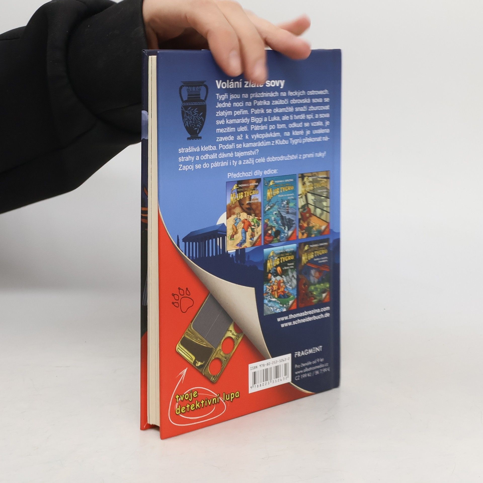 Nový případ pro tebe a Klub Tygrů! Vezmi lupu a zapoj se do pátrání. Tygři jsou na prázdninách na řeckých ostrovech. Jedné noci na Patrika zaútočí obrovská sova se zlatým peřím. Patrik se okamžitě snaží zburcovat své kamarády Biggi a Luka, ale ti tvrdě spí, a sova mezitím uletí. Pátrání po tom, odkud se vzala, je zavede až k vykopávkám, na které je uvalena strašlivá kletba. Podaří se kamarádům z Klubu Tygrů překonat nástrahy a odhalit dávné tajemství? Zapoj se do pátrání i ty a zažij celé dobrodružství z první ruky!