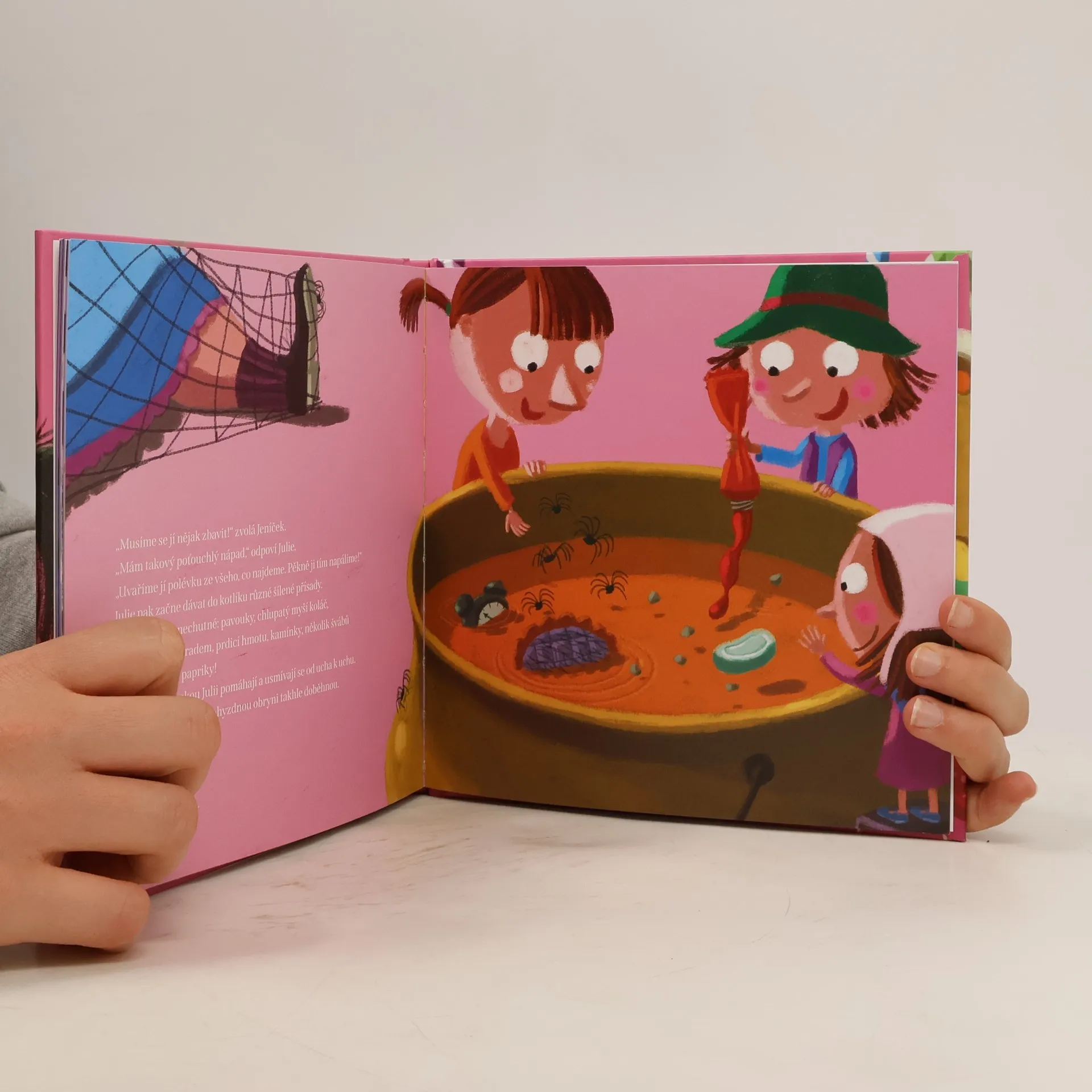 Julie ráda ostatním chystá vykutálené žertíky. Když se začte do Perníkové chaloupky, rozhodne se, že pomůže Jeníčkovi a Mařence a nenechá je bloudit lesem. Skočí rovnou do pohádky i se svou kouzelnickou taškou. Pomůžou jí vtípky překonat všechny nástrahy? Uchrání děti od zlé obryně?