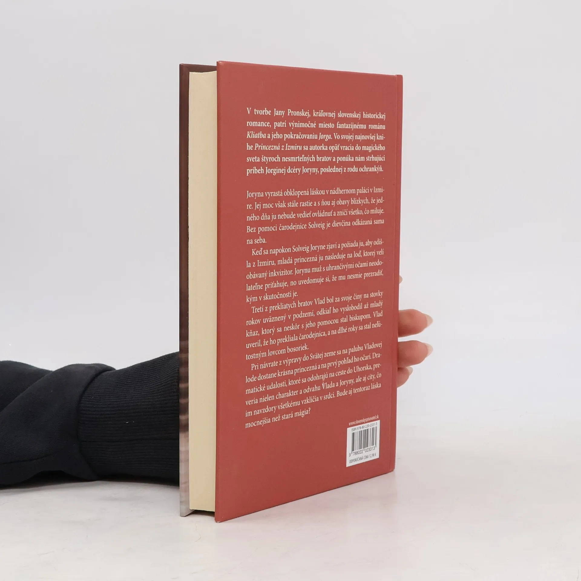 V tvorbe Jany Pronskej, kráľovnej slovenskej historickej romance, patrí výnimočné miesto fantazijnému románu Kliatba a jeho pokračovaniu Jorga. Vo svojej najnovšej knihe Princezná z Izmiru sa autorka opäť vracia do magického sveta štyroch nesmrteľných bratov a ponúka nám strhujúci príbeh Jorginej dcéry Joryny, poslednej z rodu ochrankýň. Joryna vyrastá obklopená láskou v nádhernom paláci v Izmire. Jej moc však stále rastie a s ňou aj obavy blízkych, že jedného dňa ju nebude vedieť ovládnuť a zničí všetko, čo miluje. Bez pomoci čarodejnice Solveig je dievčina odkázaná sama na seba. Keď sa napokon Solveig Joryne zjaví a požiada ju, aby odišla z Izmiru, mladá princezná ju nasleduje na loď, ktorej velí obávaný inkvizítor. Jorynu muž s uhrančivými očami neodolateľne priťahuje, no uvedomuje si, že mu nesmie prezradiť, kým v skutočnosti je. Tretí z prekliatych bratov Vlad bol za svoje činy na stovky rokov uväznený v podzemí, odkiaľ ho vyslobodil až mladý kňaz, ktorý sa neskôr s jeho pomocou stal biskupom. Vlad uveril, že ho prekliala čarodejnica, a na dlhé roky sa stal neľútostným lovcom bosoriek. Pri návrate z výpravy do Svätej zeme sa na palubu Vladovej lode dostane krásna princezná a na prvý pohľad ho očarí. Dramatické udalosti, ktoré sa odohrajú na ceste do Uhorska, preveria nielen charakter a odvahu Vlada a Joryny, ale aj city, čo im navzdory všetkému vzklíčili v srdci. Bude aj tentoraz láska mocnejšia než stará mágia?