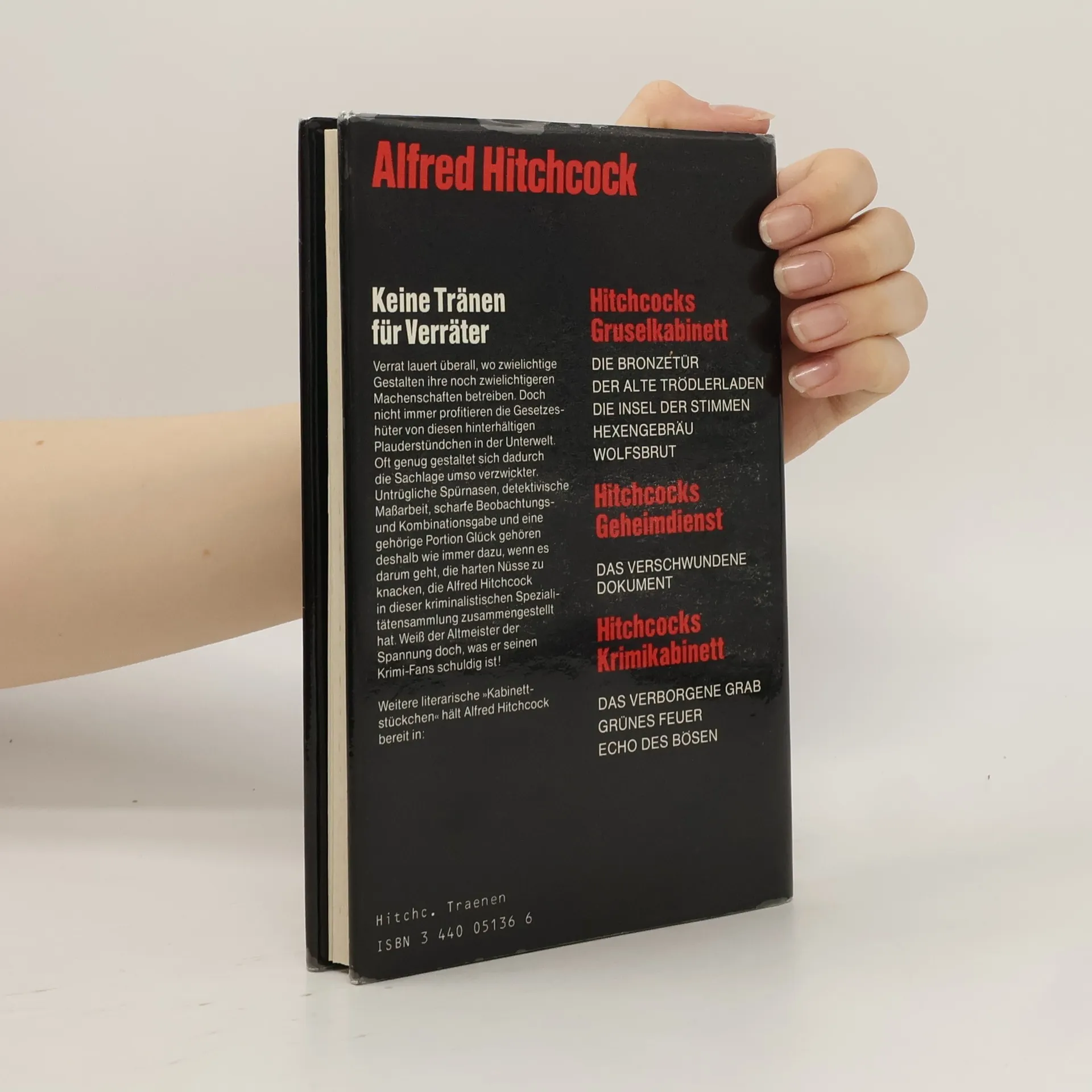 Verrat lockt einen harmlosen Studenten in der Altstadt von Amsterdam in eine lebensgefährliche Falle.Verrat heisst das schwarze Geschäft eines Geheimagenten, der sich in eine südamerikanische Untergrundorganisation eingeschmuggelt hat.Verrat treibt die clevere Diebin einer wertvollen Briefmarkensammlung geradewegs in die Arme der Polizei.Verrat lauert überall, wo zwielichtige Gestalten ihre noch zwielichtigeren Machenschaften betreiben. Nicht immer profitieren die Gesetzeshüter von derlei hinterhältigen Plauderstündchen in der Unterwelt. Oft genug gestaltet sich dadurch die Sachlage für sie umso verzwickter. Untrügliche Spürnasen, detektivische Maßarbeit, scharfe Beobachtungs- und Kombinationsgabe und eine gehörige Portion Glück gehören deshalb wie immer dazu, wenn es darum geht, die harten Nüsse zu knacken, die Alfred Hitchcock in dieser kriminalistischen Spezialitätensammlung zusammengestellt hat. Weiß der Altmeister der Spannung doch, was er seinen Krimi-Fans schuldig ist!