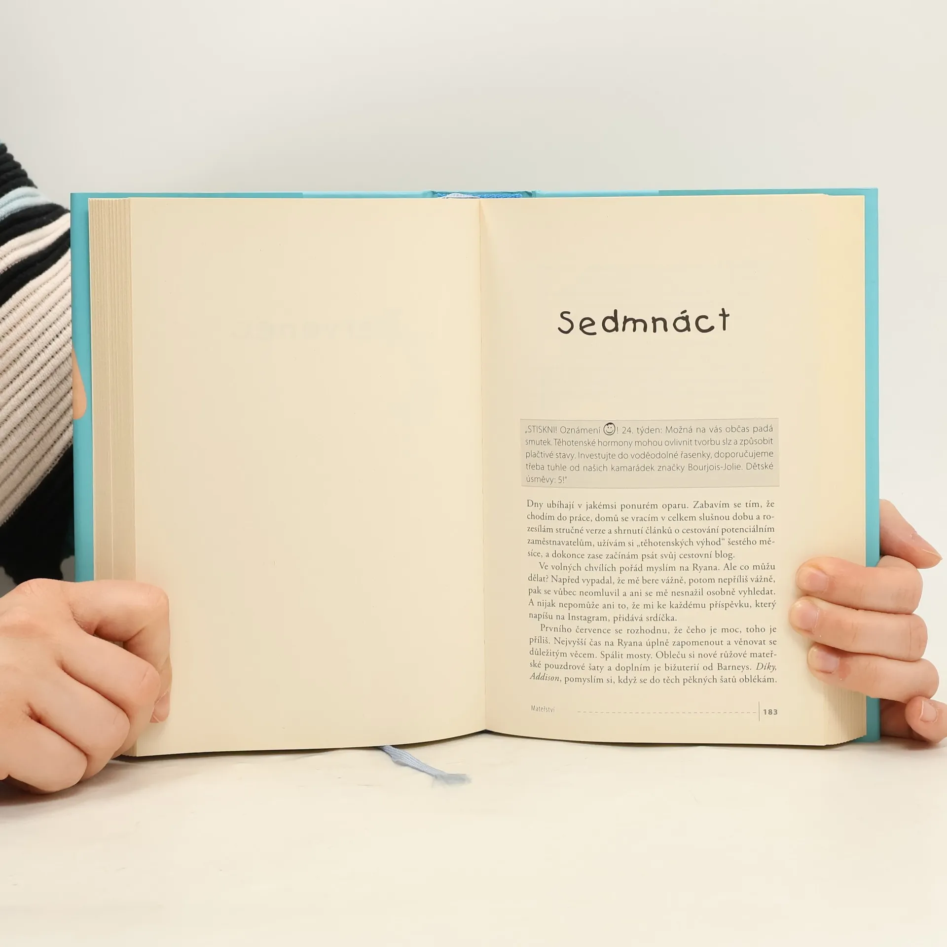 Moje mateřství - kdo říká, že musíte být těhotná, abyste šla na mateřskou dovolenou? Stejně jako všichni v New Yorku, co dělají v médiích, i Liz funguje na koláčcích, kofeinu a koktejlech. Ale po třicítce, pořád bez dětí, si čím dál častěji prohlíží drahé kočárky v dětských časopisech a pozoruje maminky s dětmi. Liz už roky tráví spousty hodin týdně navíc v práci, aby se spolupracovnice mohly věnovat dětem, a je z toho unavená. Takže když jeden den dostane ze stresu ranní nevolnosti, šéfům je to jasné – je těhotná! Liz všemožně podporují. Rozhodne se hrát tuhle hru na těhotnou. Ve dne Liz nosí bříško z pěny a těhotenské šaty, večer vyráží na večeře, do klubů. Ale jak dlouho může tuhle hru hrát? Když se blíží „porod", je Liz vyčerpána i nadšená. Má pocit viny i pocity, které prožije jen těhotná. Příběh o štěstí, úspěchu, rodině a lásce.