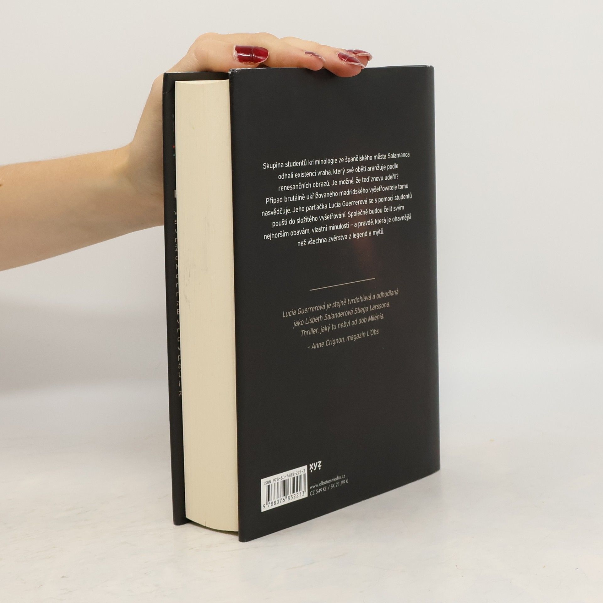 Zlo se nezastaví před ničím. Proto ho musí zastavit ona. Skupina studentů kriminologie ze španělského města Salamanca odhalí existenci vraha, který své oběti aranžuje podle renesančních obrazů. Je možné, že teď znovu udeřil? Případ brutálně ukřižovaného madridského vyšetřovatele tomu nasvědčuje. Jeho parťačka Lucia Guerrero se s pomocí studentů pouští do složitého vyšetřování. Společně budou čelit svým nejhorším obávám, vlastní minulosti – a pravdě, která je ohavnější než všechna zvěrstva z legend a mýtů.Skupina studentů kriminologie na univerzitě v Salamance odhalí existenci vraha, který už několik desetiletí uniká spravedlnosti a aranžuje své oběti podle renesančních obrazů.Vyšetřovatelka Lucia Guerrero najde v Madridu svého parťáka ukřižovaného na Kalvárii a vydá se po stopě jeho vraha.Všichni jsou konfrontováni se svou vlastní minulostí, se svými nejhlubšími hrůzami a s pravdou ohavnější než všechny legendy a mýty.