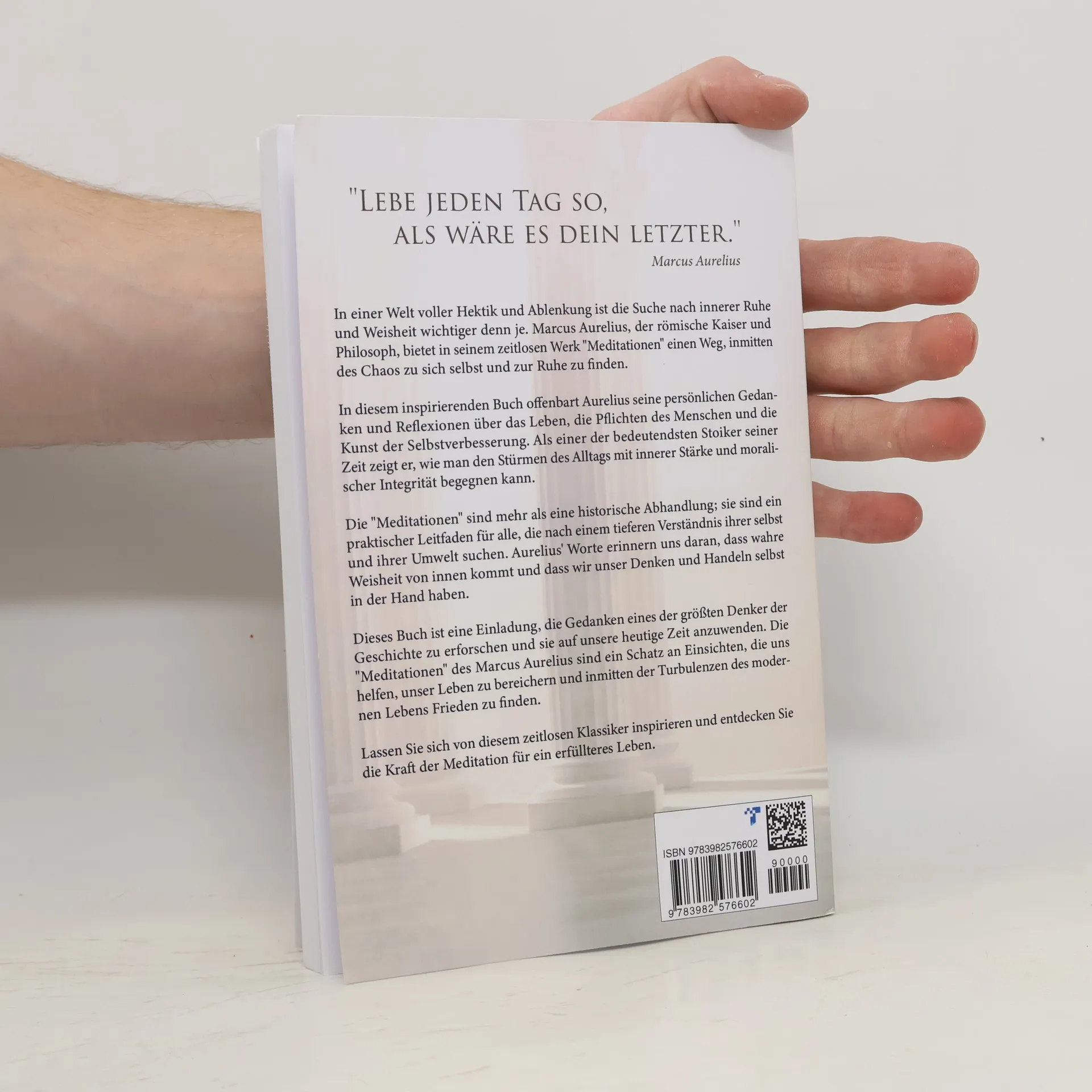 Die tiefgreifenden Gedanken und Weisheiten von Marcus Aurelius bieten einen Einblick in seine Suche nach innerem Frieden während der Herausforderungen des römischen Reiches. In Form von kurzen Notizen reflektiert er über Ethik, Tugenden, Pflichten und Selbstdisziplin. Stark geprägt von stoischer Philosophie, betont er die Wichtigkeit von Selbstbeherrschung, Gelassenheit und der Akzeptanz des Schicksals. Das Werk bewahrt die Essenz seiner Gedanken und präsentiert sie in einem modernen, verständlichen Schreibstil, der die zeitlosen Lehren für heutige Leser zugänglich macht.