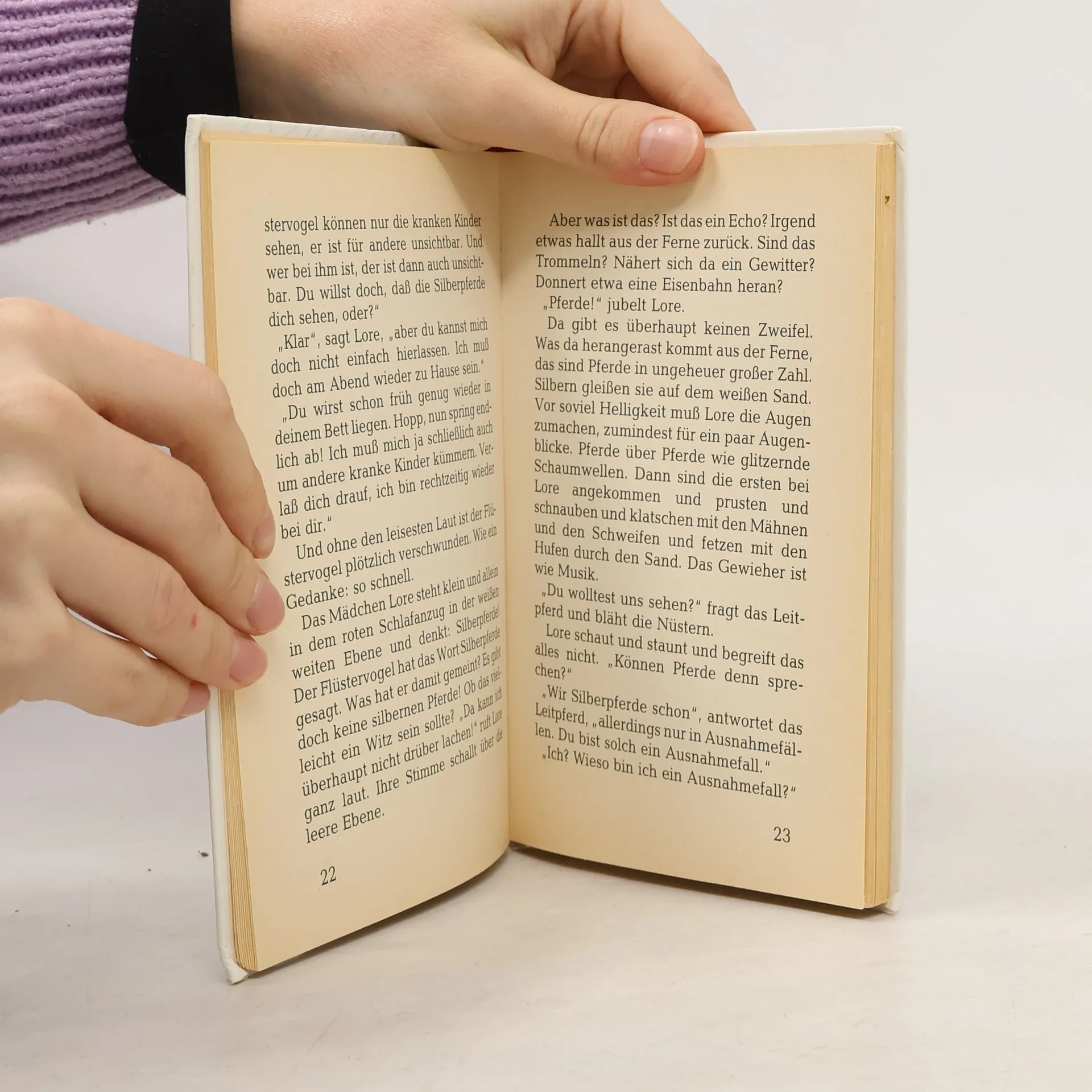 Da sind sie: die Silberpferde! "Du wolltest uns sehen?" fragt das Leitpferd und bläht die Nüstern. Lore staunt: "Können Pferde denn sprechen?" "Wir Silberpferde schon", antwortet das Leitpferd, "allerdings nur in Ausnahmefällen. Du bist solch ein Ausnahmefall." "Ich? Wieso bin ich ein Ausnahmefall?" "Weil du krank bist."Zu allen kranken Kindern kommt der Flüstervogel. Er nimmt sie mit auf die Reise - zu den Silberpferden oder wohin die Kinder wollen. Damit sie schnell wieder gesund werden ...