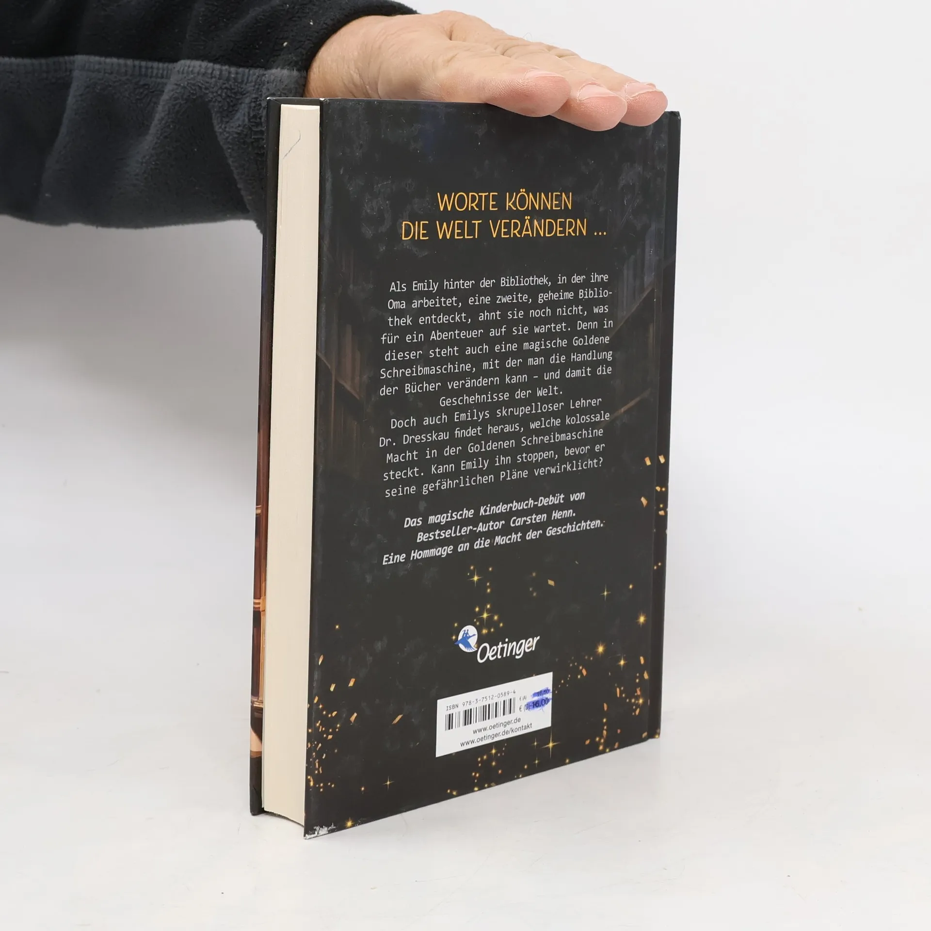 In "Die Goldene Schreibmaschine" entdeckt Emily hinter der Bibliothek eine geheime, magische Bibliothek, in der jedes Buch der Welt steht. Mit einer goldenen Schreibmaschine kann sie die Geschichten verändern und die Realität beeinflussen. Doch ihr Lehrer Dresskau will diese Macht für seine eigenen finsteren Pläne nutzen. Ein Abenteuer über die Kraft der Geschichten für Kinder ab 10 Jahren.