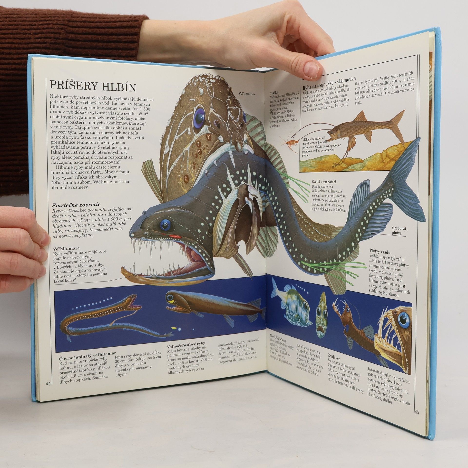 Niet azda hrôzostrašnejšieho pohľadu, ako je plutva hladného veľkého bieleho žraloka, ktorou rozráža hladinu mora. Žralok však nie je jediným postrachom morských hlbín. Svetové oceány sú plné rôznych `príšer` a niektoré z nich sú oveľa strašnejšie ako žralok. V tejto knihe sa zoznámite s mnohými obyvateľmi morských hlbín - veľkými i menšími, nebezpečnými i ohyzdnými.Nádherné farebné ilustrácie zobrazujú život rôznych útočných dravcov, ktoré prenasledujú svoju korisť vo všetkých svetových moriach - pri austrálskom pobreží smrteľne jedovatá chobotnica modrokrúžková, inde zas hrôzostrašne vyzerajúci morský čert, nenásytná hadovitá muréna, obrovský vorvaň .... A samozrejme, kdekoľvek sa pozriete, samé žraločie zuby a čeľuste!