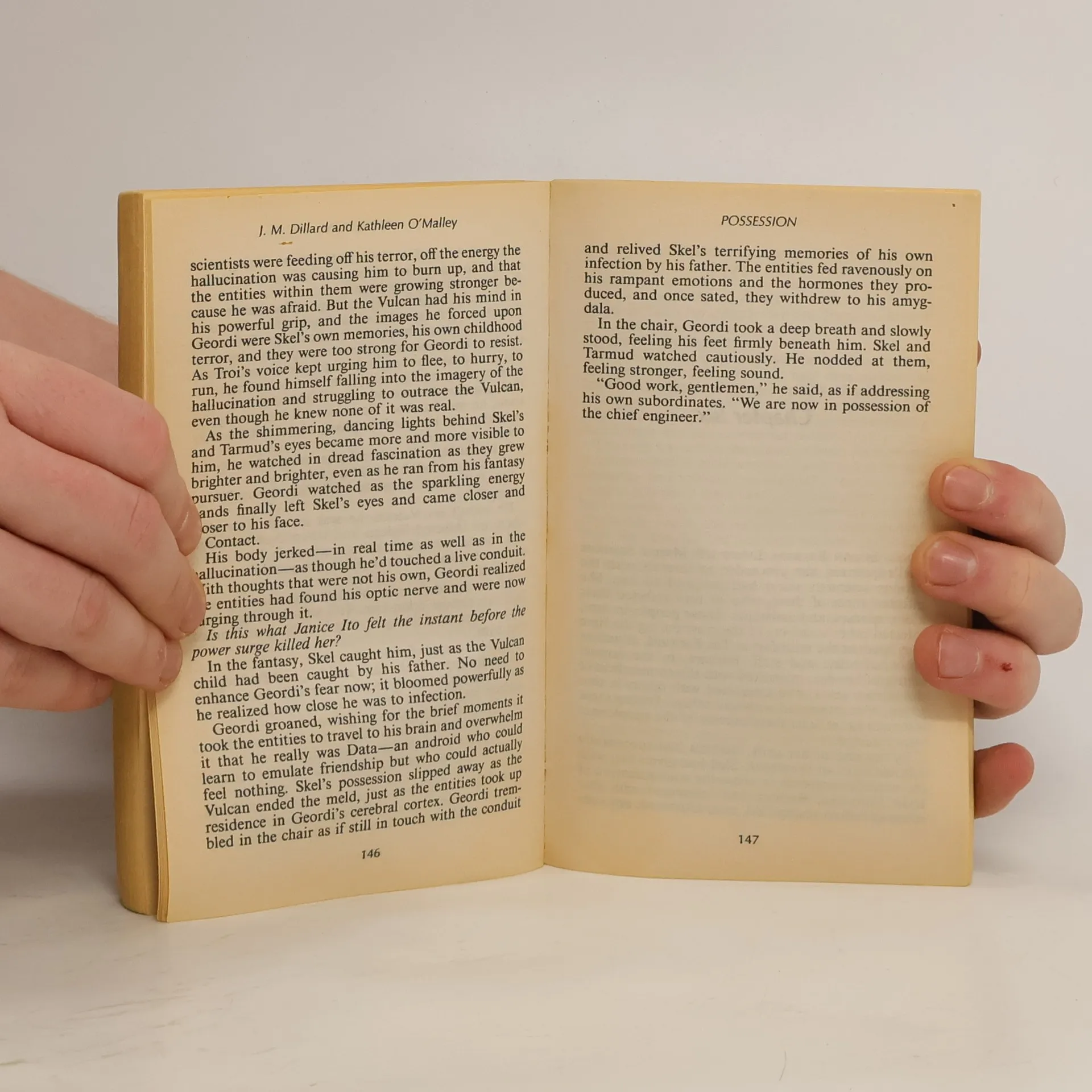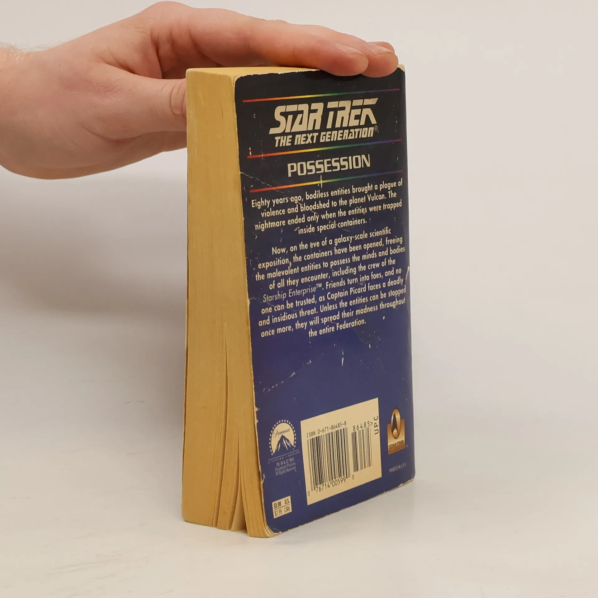Eighty years ago, bodiless entities brought a plague of violence and bloodshed to the planet Vulcan. The nightmare ended only when the entities were trapped inside special containers. Now, on the eve of a galaxy-scale scientific exposition, the containers have been opened, freeing the malevolent entities to possess the minds and bodies of all they encounter, including the crew of the "Starship Enterprise"(TM) . Friends turn into foes, and no one can be trusted as Captain Picard faces a deadly and insidious threat. Unless the entities can be stopped once more, they will spread their madness throughout the entire federation.