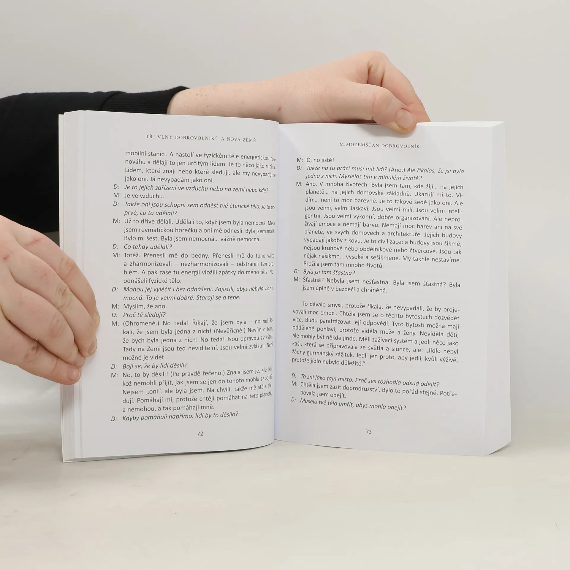 Druhý díl knihy Tři vlny dobrovolníků se dělí na dvě části: Mimozemštané a světelné bytosti a Nová Země. Po vypuštění atomové bomby v roce 1945 si naši „ochránci“ ve vesmíru uvědomili, že Země směřuje k katastrofě. Hlavní nařízení o nezasahování jim bránilo v akci, ale vymysleli plán, jak pomoci Zemi v jejím vzestupu. Nemohli zasahovat „zvenčí“, ale rozhodli se jednat „zevnitř“ a vyzvali dobrovolníky k pomoci. Domorodé duše na Zemi se ocitly uvězněny v karmických cyklech, a tak bylo nutné přivést čisté duše, které se nikdy nedostaly do karmické pasti. Dolores během své hypnotické práce objevila tři vlny těchto dobrovolníků. Někteří přišli přímo od „Zdroje“ a nikdy předtím nežili v těle, jiní byli vesmírné bytosti z jiných planet či dimenzí. Po vstupu do dimenze Země ztrácejí paměť o svém úkolu, což ztěžuje jejich adaptaci v našem chaotickém světě. Tyto duše hrají klíčovou roli při přechodu nás všech do Nové Země. Kniha se také zabývá obtížemi prvně-inkarnovaných, vlivem vzestupu na fyzické tělo, rolí mimozemských bytostí při vzestupu, správci sítě a smyslem roku 2012.