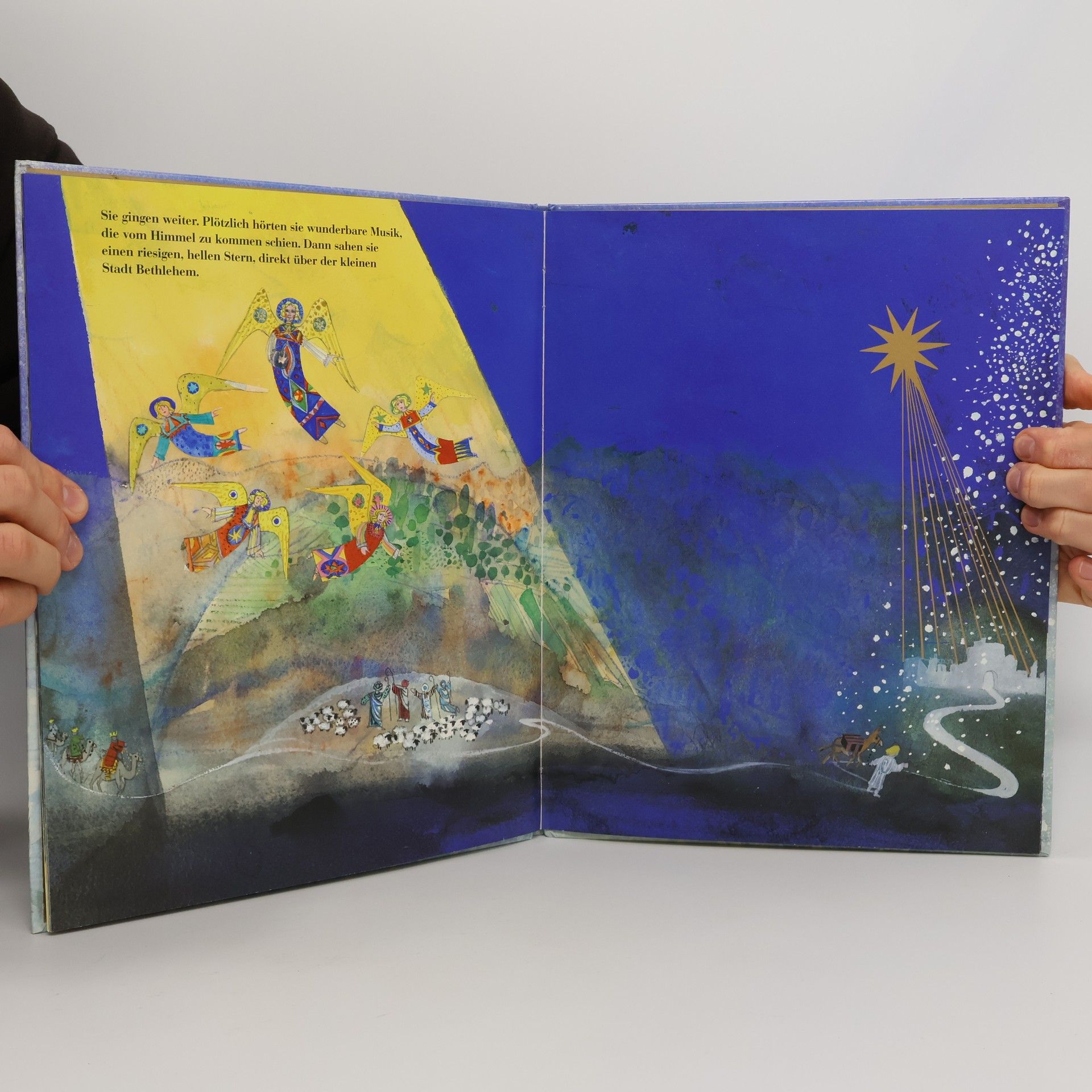 Dieses Bilderbuch von Brian Wildsmith besticht durch intensive Farben und aufwendigen Golddruck. Es erzählt ab 4 Jahren die Weihnachtsgeschichte, beginnend mit der Geburt eines kleinen Esels in Nazareth.