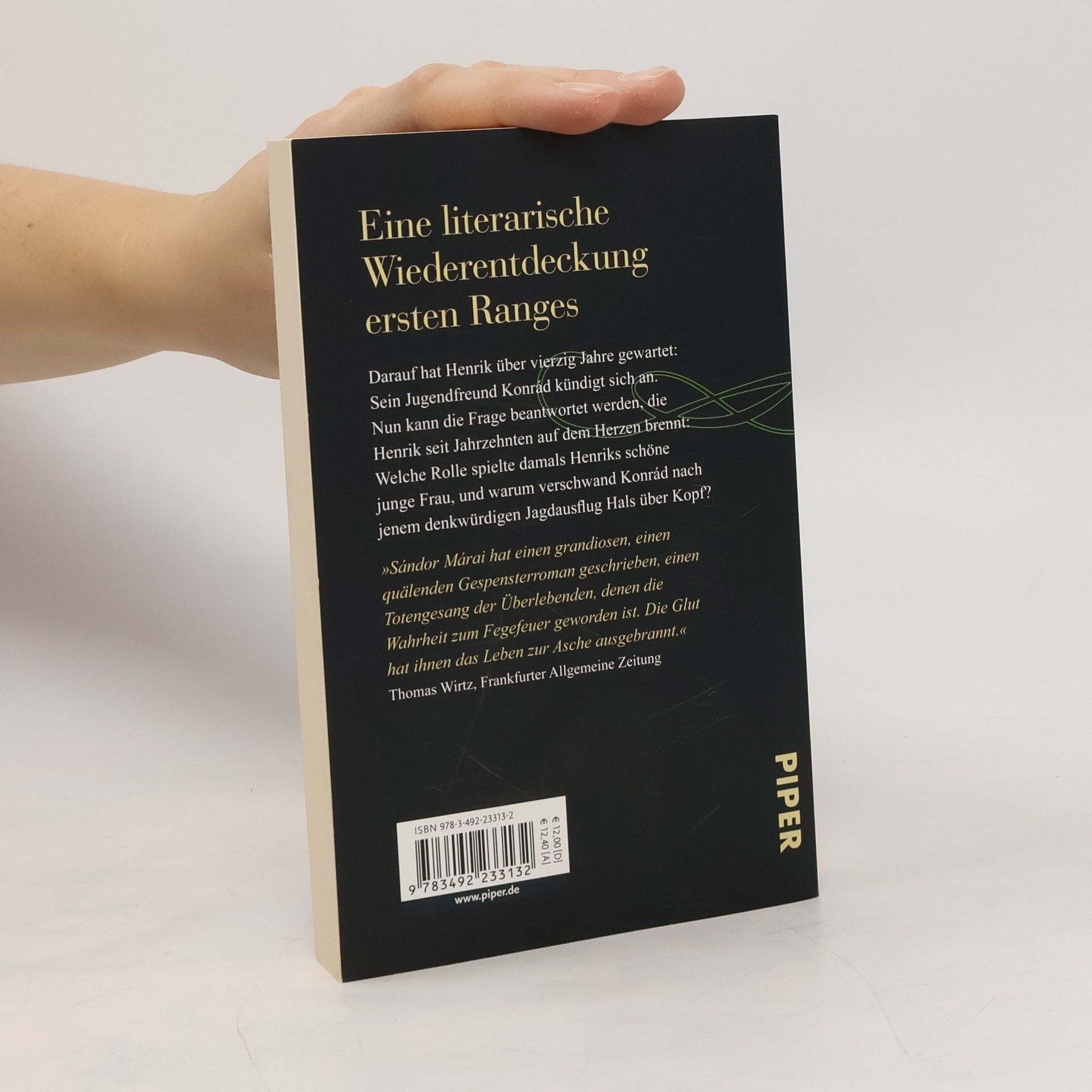 Darauf hat Henrik über 40 Jahre gewartet: Sein Jugendfreund Konrád kündigt sich an. Nun kann die Frage beantwortet werden, die Henrik seit Jahrzehnten auf dem Herzen brennt: Welche Rolle spielte damals Krisztina, Henriks schöne junge Frau? Warum verschwand Konrád nach jenem denkwürdigen Jagdausflug Hals über Kopf? Eine einzige Nacht haben die beiden Männer, um den Fragen nach Leidenschaft und Treue, Wahrheit und Lüge auf den Grund zu gehen. »Sándor Márai hat einen grandiosen, einen quälenden Gespensterroman geschrieben, einen Totengesang der Überlebenden, denen die Wahrheit zum Fegefeuer geworden ist. Die Glut hat ihnen das Leben zur Asche ausgebrannt.« ― Frankfurter Allgemeine Zeitung