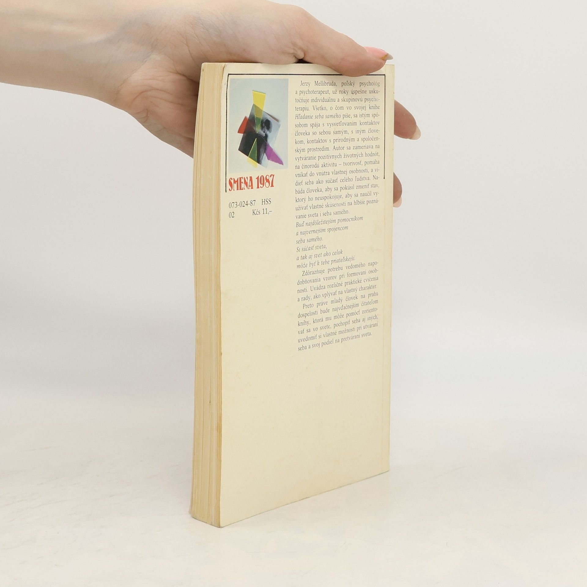 Jerzy Mellibruda, poľský psychológ a psychoterapeut, už roky úspešne uskutočňuje individuálnu a skupinovú psychoterapiu. Všetko, o čom vo svojej knihe Hľadanie seba samého píše, sa istým spôsobom spája s vysvetľovaním kontaktov človeka so sebou samým, s iným človekom, kontaktov s prírodným a spoločenským prostredím. Autor sa zameriava na vytváranie pozitívnych životných hodnôt, na činorodú aktivitu - tvorivosť, pomáha vnikať do vnútra vlastnej osobnosti, a vidieť seba ako súčasť celého ľudstva. Nabáda človeka, aby sa pokúsil zmeniť stav, ktorý ho neuspokojuje, aby sa naučil využívať vlastné skúsenosti na hlbšie poznávanie sveta i seba samého. Buď najdôležitejším pomocníkom a najvernejším spojencom seba samého. Si súčasť sveta, a tak aj svet ako celok môže byť k tebe priateľskejší. Zdôrazňuje potrebu vedomého napodobňovania vzorov pri formovaní osobnosti. Uvádza rozličné praktické cvičenia a rady, ako vplývať na vlastný charakter. Preto práve mladý človek na prahu dospelosti bude najvďačnejším čitateľom knihy, ktorá mu môže pomôcť zorientovať sa vo svete, pochopiť seba aj iných, uvedomiť si vlastné možnosti pri utváraní seba a svoj podiel na pretváraní sveta.