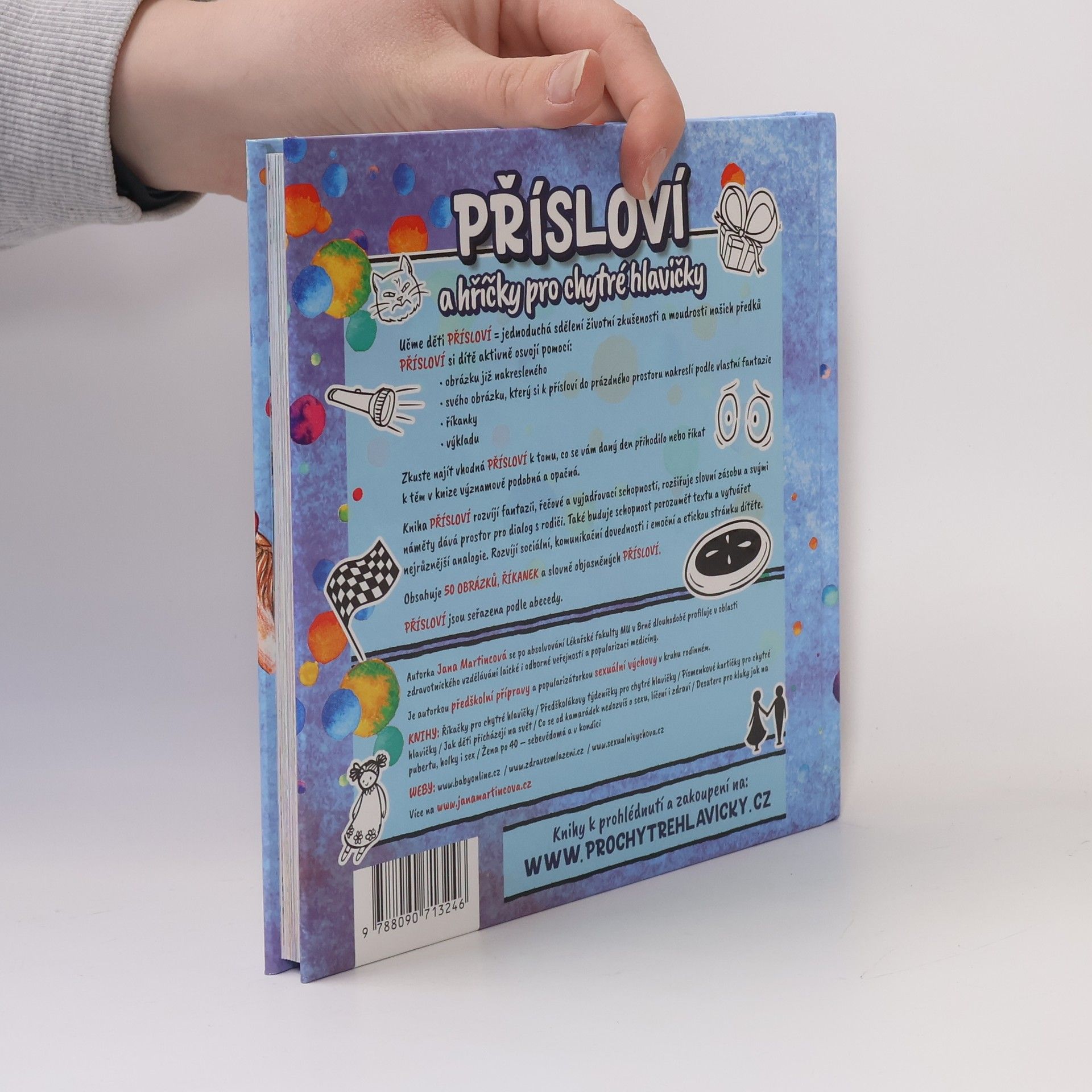 Jedinečná dětská kniha, která hravou formou učí děti moudrosti našich předků. Obsahuje 50 obrázků, říkanek a slovně objasněných přísloví. U každého přísloví je také prostor pro vlastní obrázek dítěte.