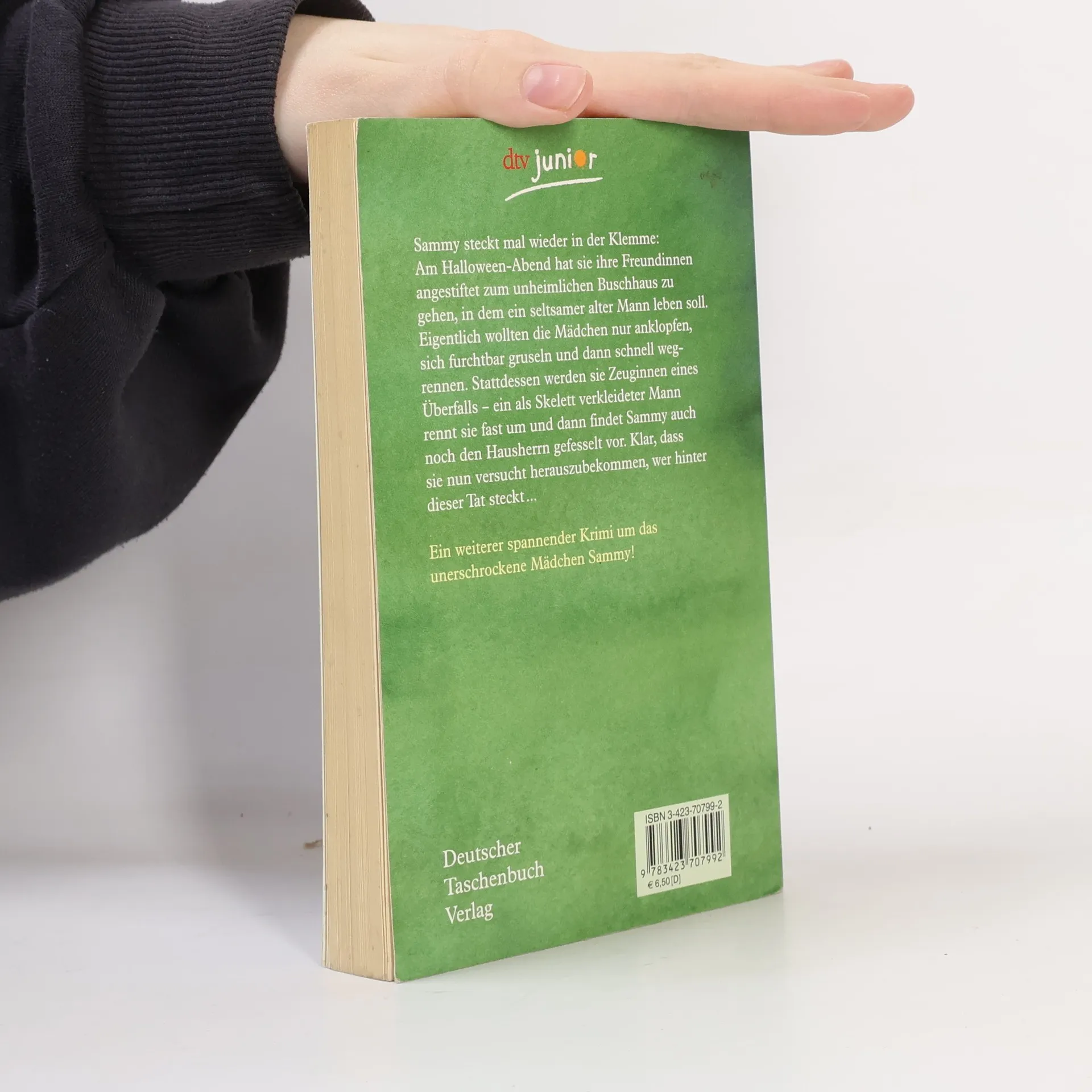 Ein weiterer spannender Krimi um das unerschrockene Mädchen Sammy! Sammy steckt mal wieder in der Klemme: Am Halloween-Abend hat sie ihre Freundinnen angestiftet, zum unheimlichen Buschhaus zu gehen, in dem ein seltsamer, alter Mann leben soll. Eigentlich wollten  die Mädchen nur anklopfen, sich furchtbar gruseln und dann schnell wegrennen. Stattdessen werden sie Zeuginnen eines Überfalls – ein als Skelett verkleideter Mann rennt sie fast um und dann findet Sammy auch noch den Hausherrn gefesselt vor. Klar, dass sie nun versucht herauszubekommen, wer hinter dieser Tat steckt …