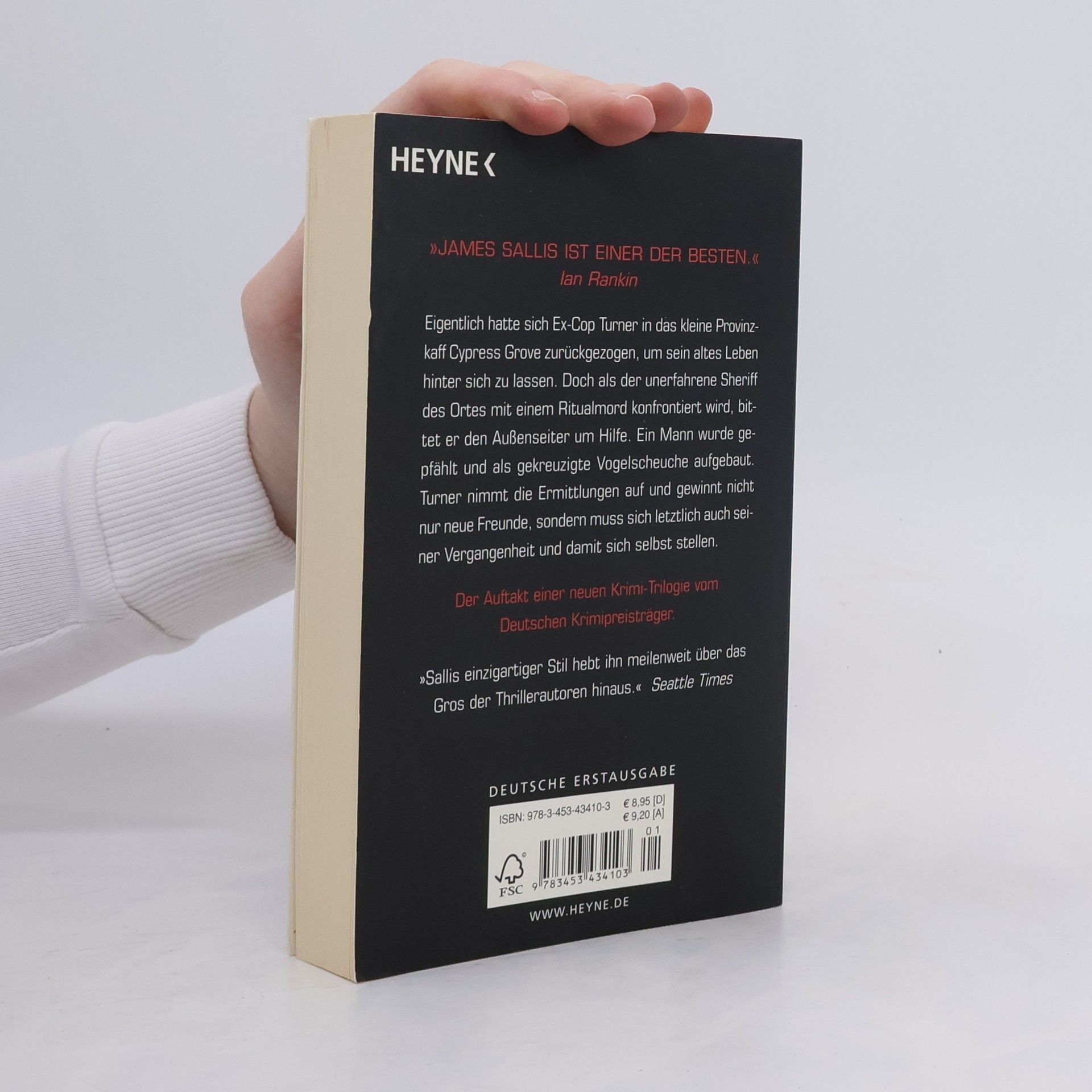 Ex-Cop Turner zieht sich nach Cypress Grove zurück, wird jedoch von dem unerfahrenen Sheriff um Hilfe bei einem Ritualmord gebeten. Ein Mann wurde als gekreuzigte Vogelscheuche gefunden. Turner ermittelt, findet neue Freunde und konfrontiert seine eigene Vergangenheit. Deutscher Krimipreis-Träger 2008.