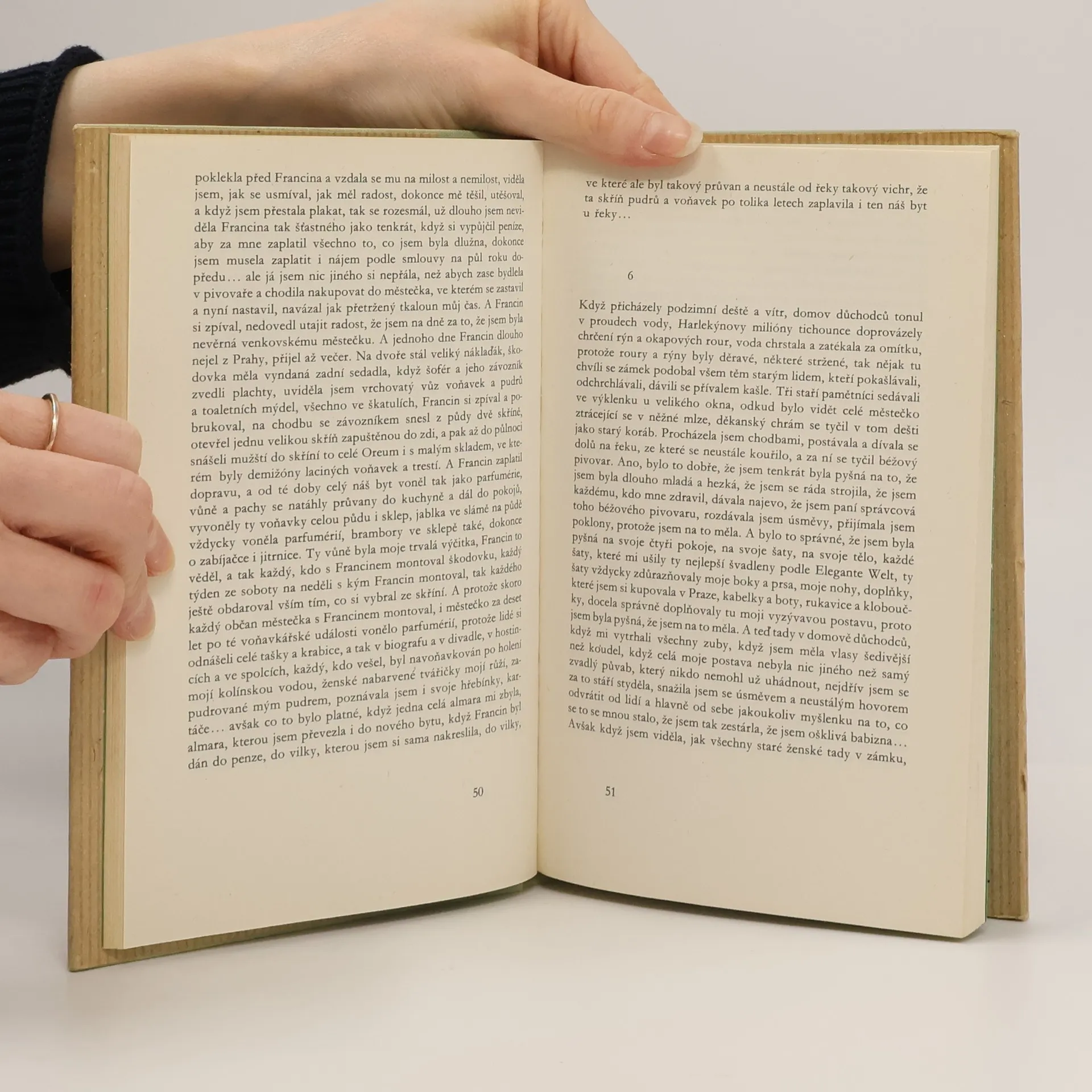 Setkáváme se zde s postavami známými z předchozích knih Postřižiny a Krasosmutnění, tentokrát ale mnohem staršími, ve zcela jiném světě, v domově důchodců, ve světě na který se díváme především očima maminky a spolu s ní se i vracíme ve vzpomínkách na místa mladších let, do městečka, do pivovaru, k historkám podávaným se stejnou živostí ale nahlíženým spektrem životních poznatků. 1.vydání