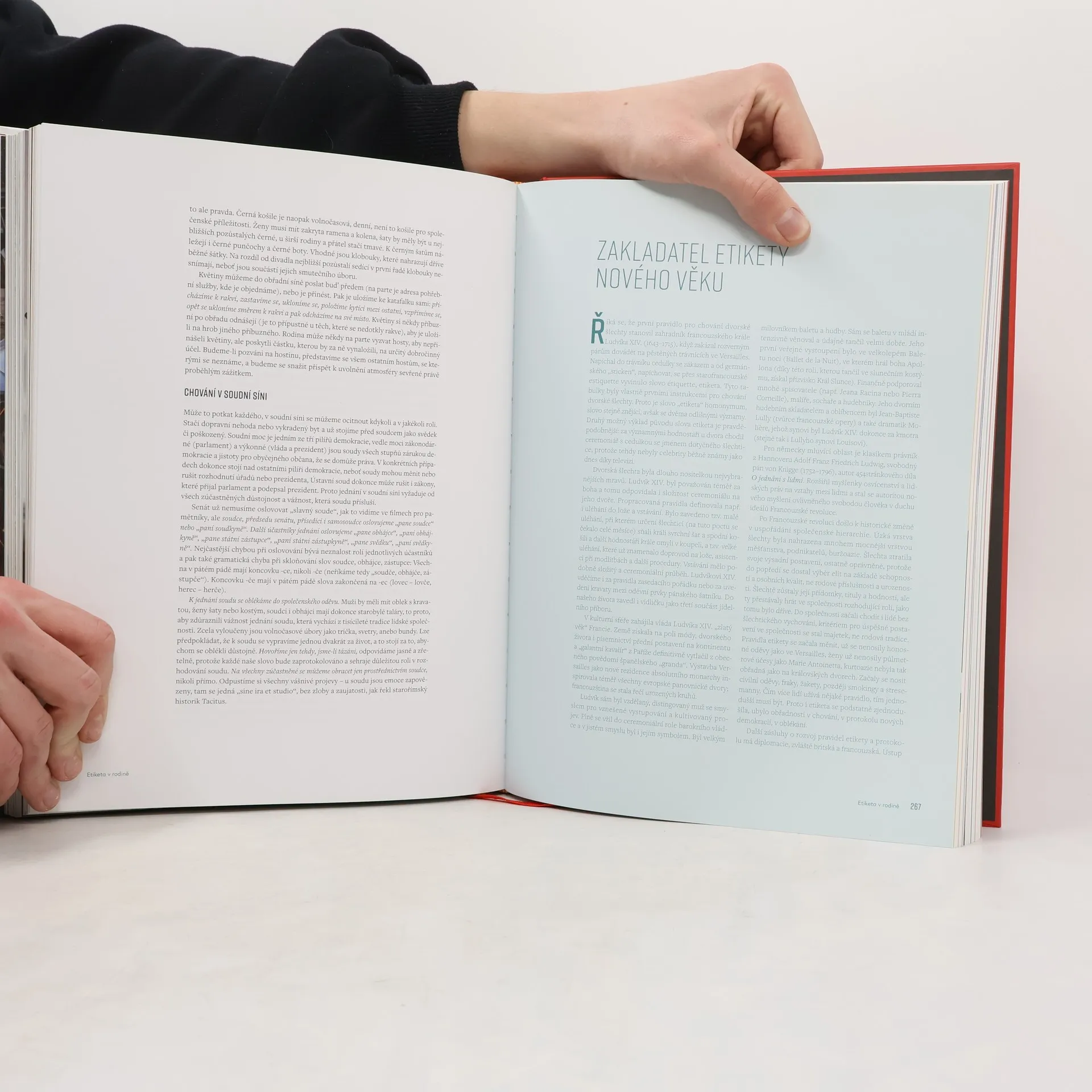 Tato kniha je nejobsáhlejší příručkou etikety, jaká kdy u nás vyšla. Obsahuje komplexní soubor pravidel etikety ze všech oblastí lidského života. Najdete v ní poučení pro všechny životní situace a budete vědět, jak být svým dětem vzorem. V Etiketě se dočtete leccos z toho, co bylo zmíněno v předchozích knihách (brambory se krájejí vidličkou dnes a krájely se tak i před deseti lety a sako se zapíná na horní knoflík už od vévody z Windsoru), ale najdete v ní i mnohá pravidla, u nichž došlo oproti minulosti ke změně (třeba že kravata už není vyžadována tak často jako před dvaceti lety nebo za jakých okolností si lze obléct džíny do společnosti). Etiketa si všímá rozdílů mezi mladou a starší generací, vysvětluje stylové rozlišení konzervativního a ležérního stylu, neodsuzuje módní vlivy a neomezuje se na drahé a značkové oblečení. Je moderní, praktická a srozumitelná všem.