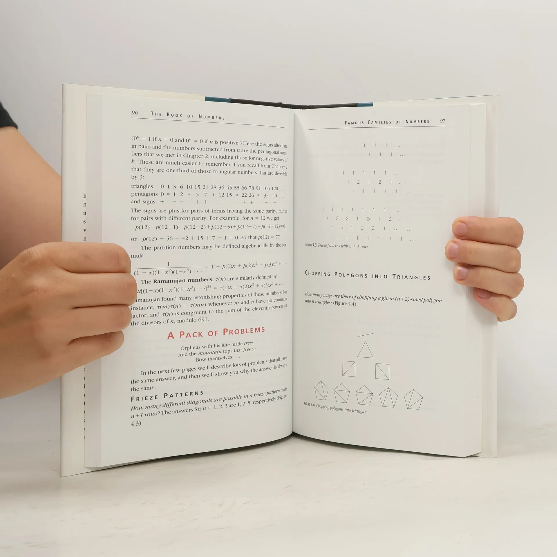 The Book of Numbers lets readers of all levels of mathematical sophistication (or lack thereof) understand the origins, patterns, and interrelationships of different numbers. Whether it is a visualization of the Catalan numbers or an explanation of how the Fibonacci numbers occur in nature, there is something in here to delight everyone. The diagrams and pictures, many of which are in color, make this book particularly appealing and fun. A few of the discussions may be confusing to those who are not adept mathematicians; those who are may be irked that certain facts are mentioned without an accompanying proof. Nonetheless, The Book of Numbers will succeed in infecting any reader with an enthusiasm for numbers.