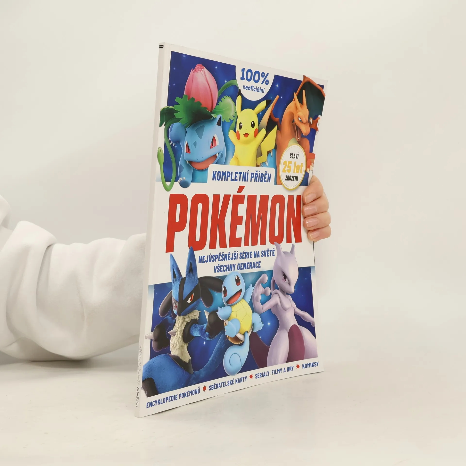 Speciální výroční Kompletní příběh Pokémon vás provede po dlouhé cestě od první generace pokémonů k zatím nejnovější osmé. Každá další éra přitom přinesla do hry nové prvky i hrdiny, přehledná encyklopedie pokémonů, takzvaný pokédex, vám proto názorně ukáže, jak se řady kapesních příšerek postupně rozrůstaly. Seznámíte se s okolnostmi vzniku původních videoher, nahlédnete do zákulisí televizního seriálu, získáte i mnoho dalších neocenitelných informací. Ať jste zkušený profesor pokémonů nebo vaše pouť do Indigové ligy teprve začíná, nepochybujeme, že se při tom dobře pobavíte. Vaše vlastní legenda o pokémonech právě začíná. Otevírá se před vámi svět snění a dobrodružství, stačí udělat první krok! Encyklopedie Pokémonů Prostudujte si kompletní pokédex – od Bulbasaura po Calyrexe Všechny generace Poznejte historii série, z oblasti Kanto až do posledního regionu Galar Sběratelská karetní hra Příběh strategické a neuvěřitelně zábavné sběratelské karetní hry Pokémon Film a anime Ponořte se do světa nezapomenutelného televizního seriálu a kultovních filmů