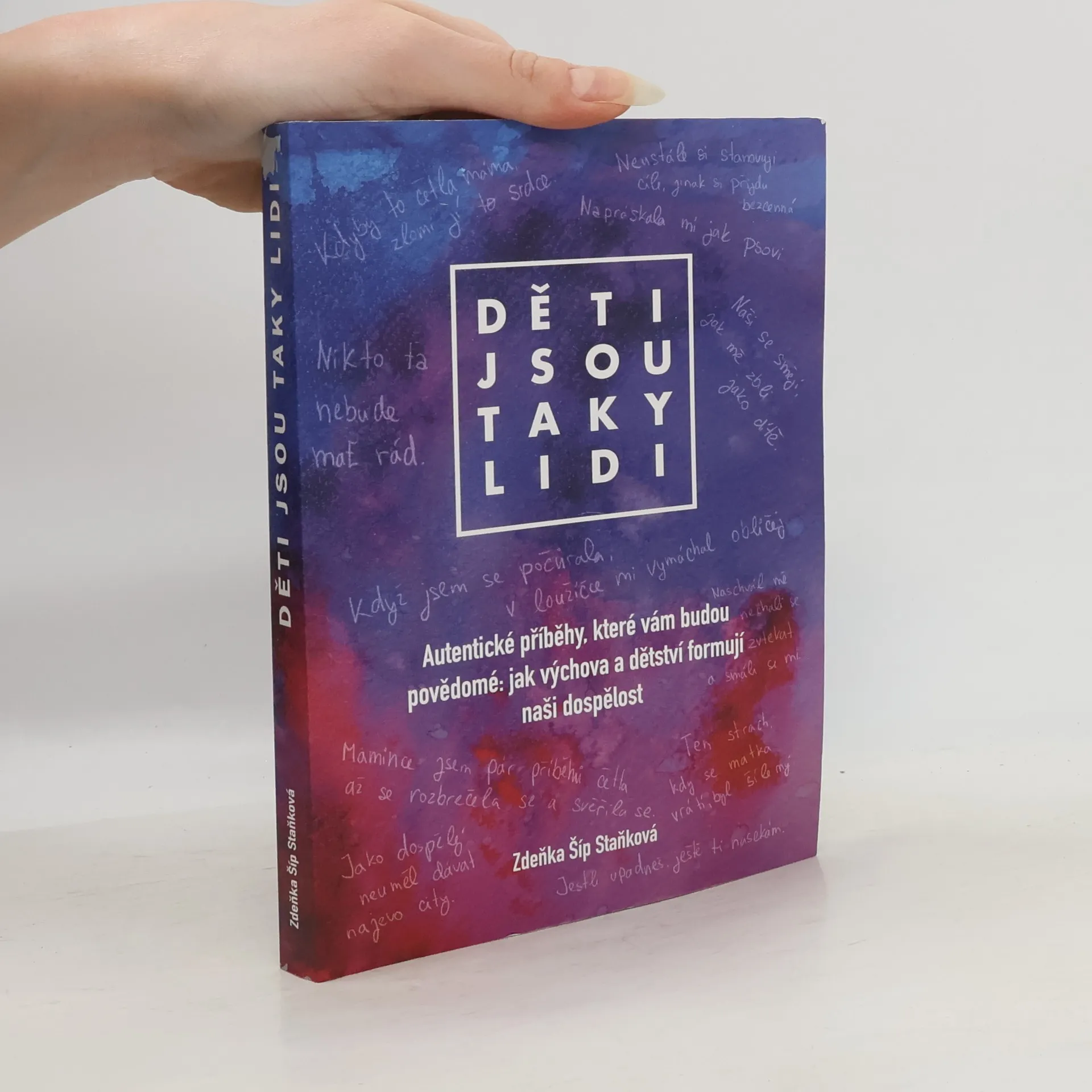 Autentické příběhy, které vám budou povědomé: jak výchova a dětství formují naši dospělost.Kniha Děti jsou taky lidi autorky Zdeňky Šíp Staňkové. Délka knihy je 304 stran a doprovázejí ji ilustrace Petry Svobodové. Předmluvu ke knize s autentickými příběhy traumatu napsaly psycholožky Jana Nováčková a Jana Kubíčková.