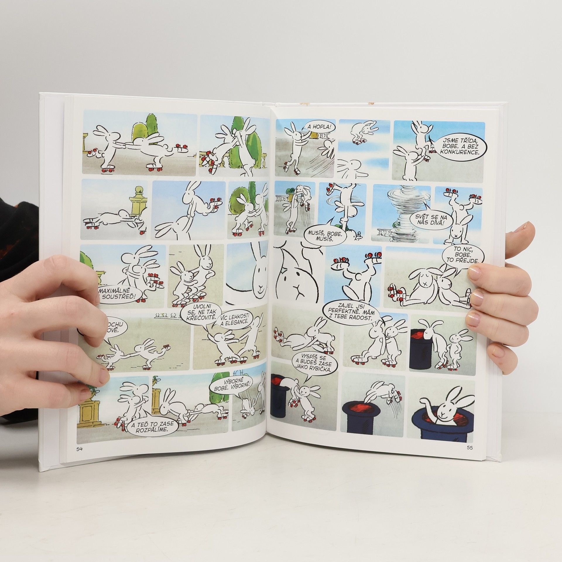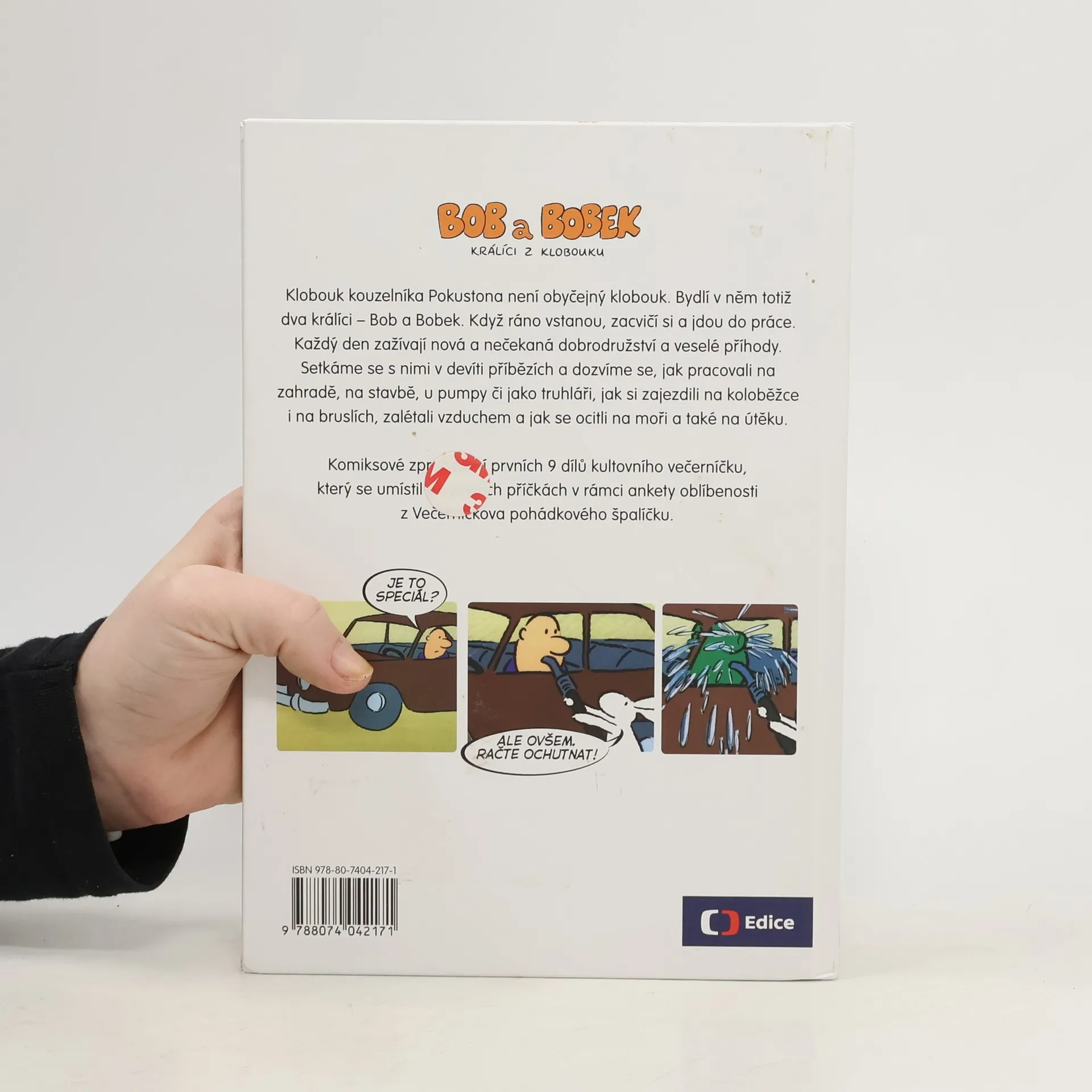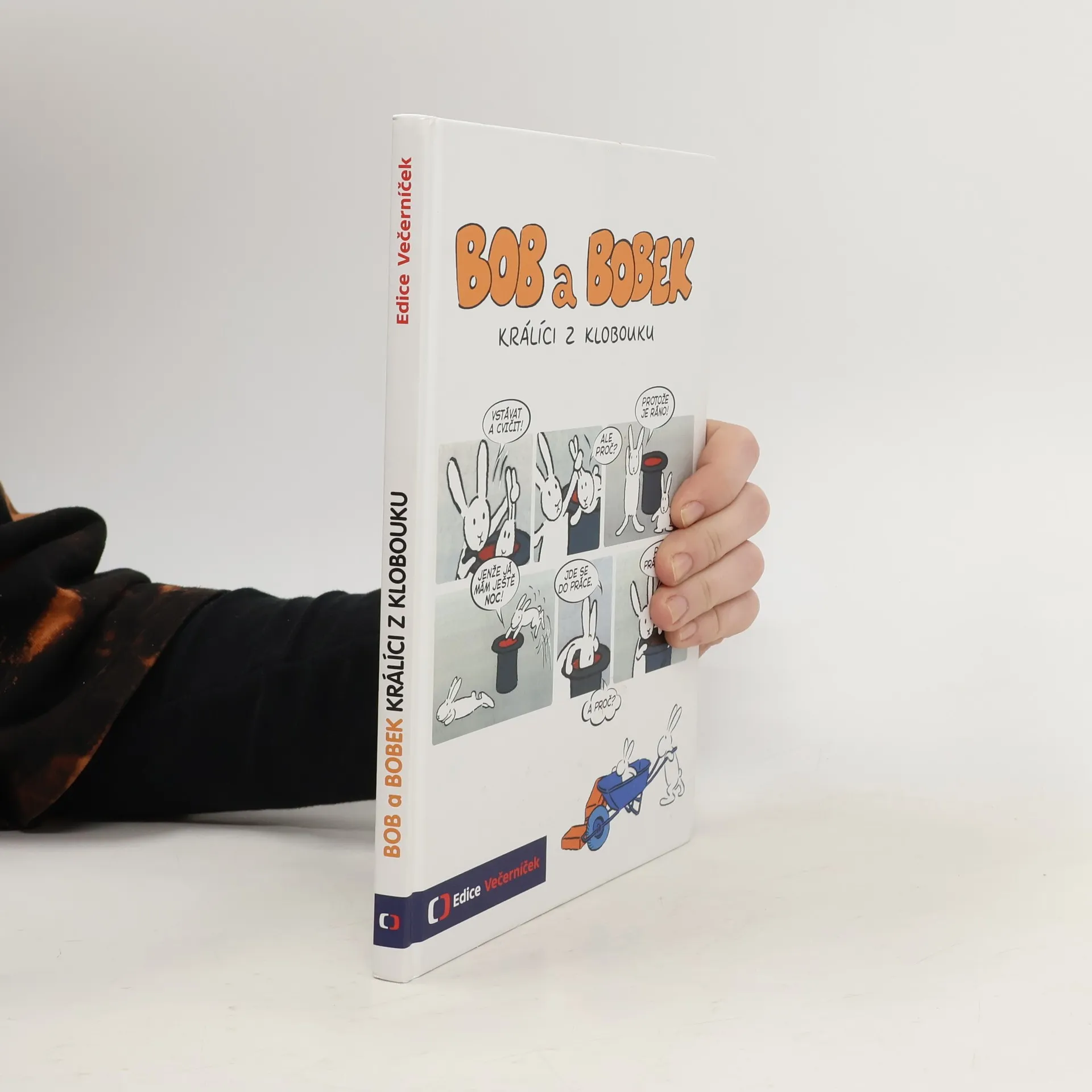 Klobouk kouzelníka Pokustona není obyčejný klobouk. Bydlí v něm totiž dva králíci – Bob a Bobek. Když ráno vstanou, zacvičí si a jdou do práce. Každý den zažívají nová a nečekaná dobrodružství a veselé příhody. Setkáme se s nimi v devíti příbězích a dozvíme se, jak pracovali na zahradě, na stavbě, u pumpy či jako truhláři, jak si zajezdili na koloběžce i na bruslích, jak si zalétali vzduchem a jak se ocitli na moři a také na útěku. Komiksové zpracování prvních 9 dílů kultovního večerníčku, který se umístil na prvních příčkách v rámci ankety oblíbenosti z Večerníčkova pohádkového špalíčku.