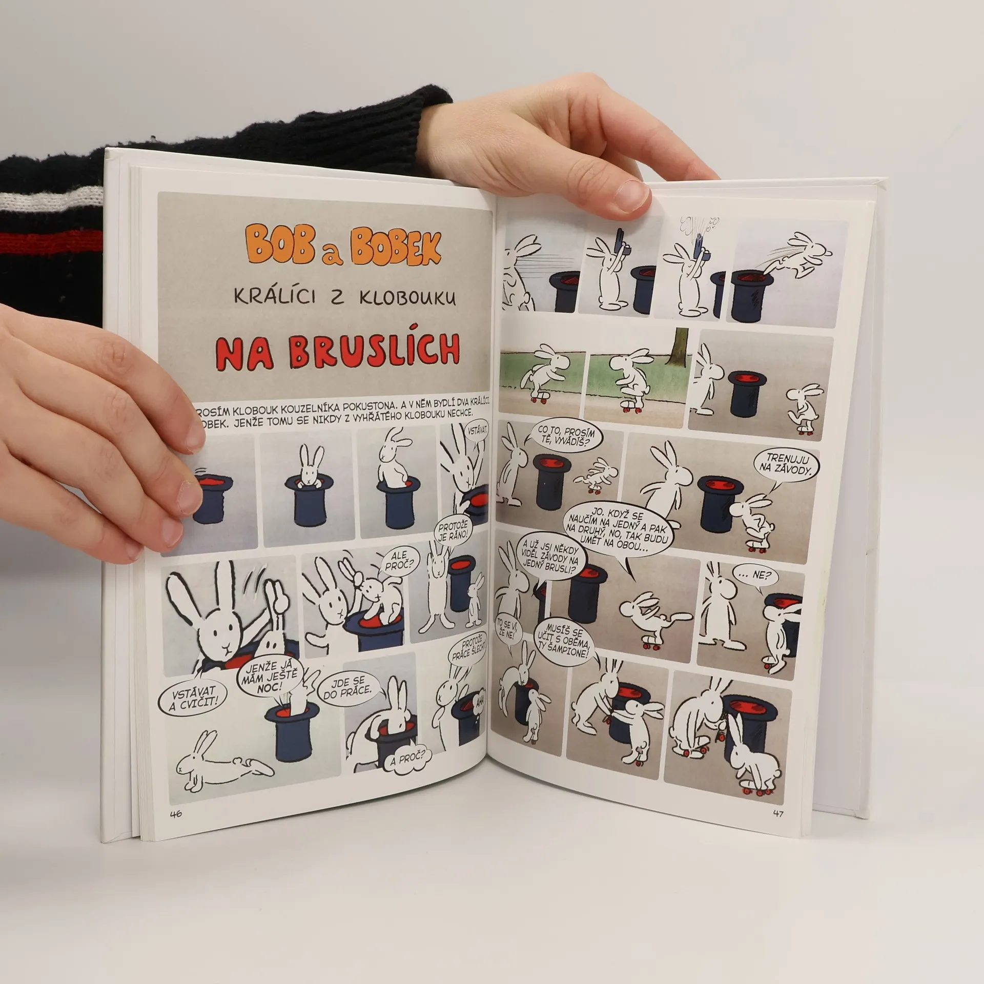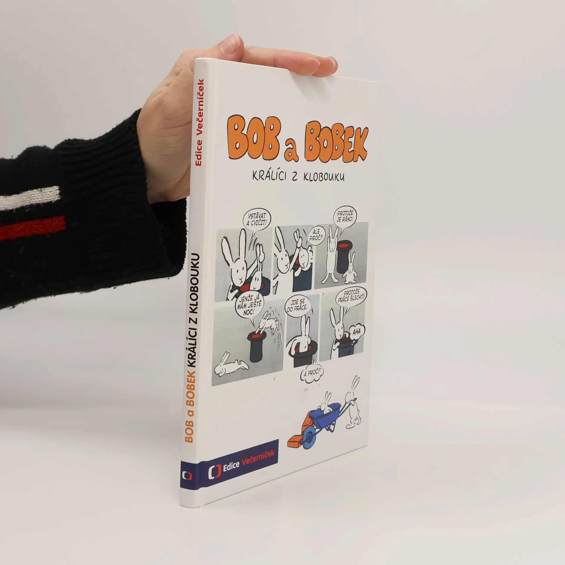 Klobouk kouzelníka Pokustona není obyčejný klobouk. Bydlí v něm totiž dva králíci – Bob a Bobek. Když ráno vstanou, zacvičí si a jdou do práce. Každý den zažívají nová a nečekaná dobrodružství a veselé příhody. Setkáme se s nimi v devíti příbězích a dozvíme se, jak pracovali na zahradě, na stavbě, u pumpy či jako truhláři, jak si zajezdili na koloběžce i na bruslích, jak si zalétali vzduchem a jak se ocitli na moři a také na útěku. Komiksové zpracování prvních 9 dílů kultovního večerníčku, který se umístil na prvních příčkách v rámci ankety oblíbenosti z Večerníčkova pohádkového špalíčku.
