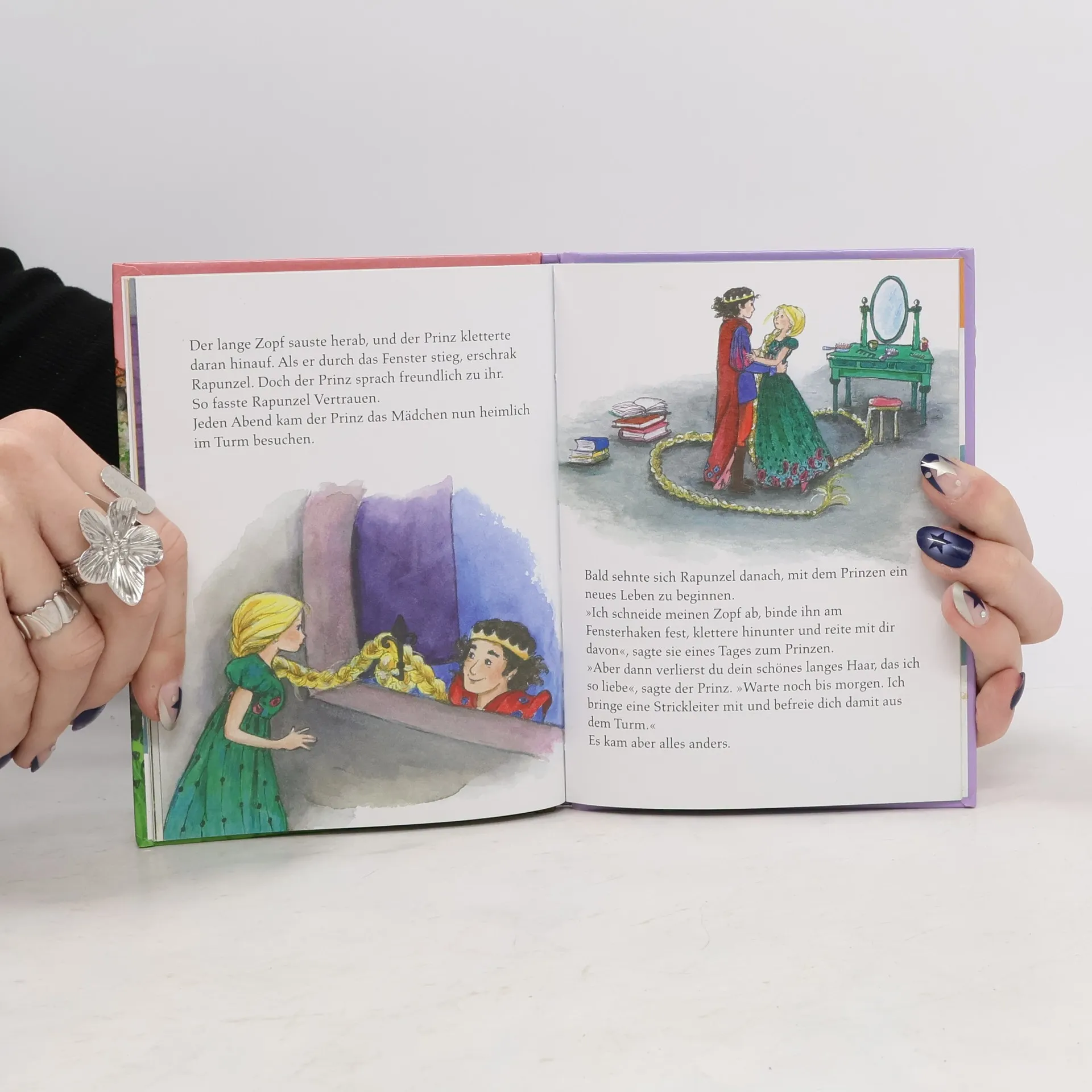 Die Künstlerin Jilla Parhami, in Teheran geboren und in Kalifornien lebend, präsentiert mit ihren Illustrationen eine neue Erzählung des Märchens von Rapunzel, das trotz scheinbar auswegloser Situationen immer ein gutes Ende findet.
