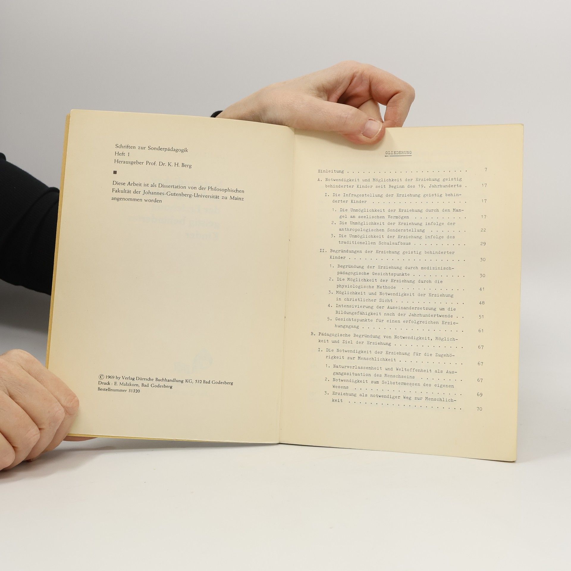 Notwendigkeit und Möglichkeit der Erziehung geistig behinderter Kinder, Heinz Mühl