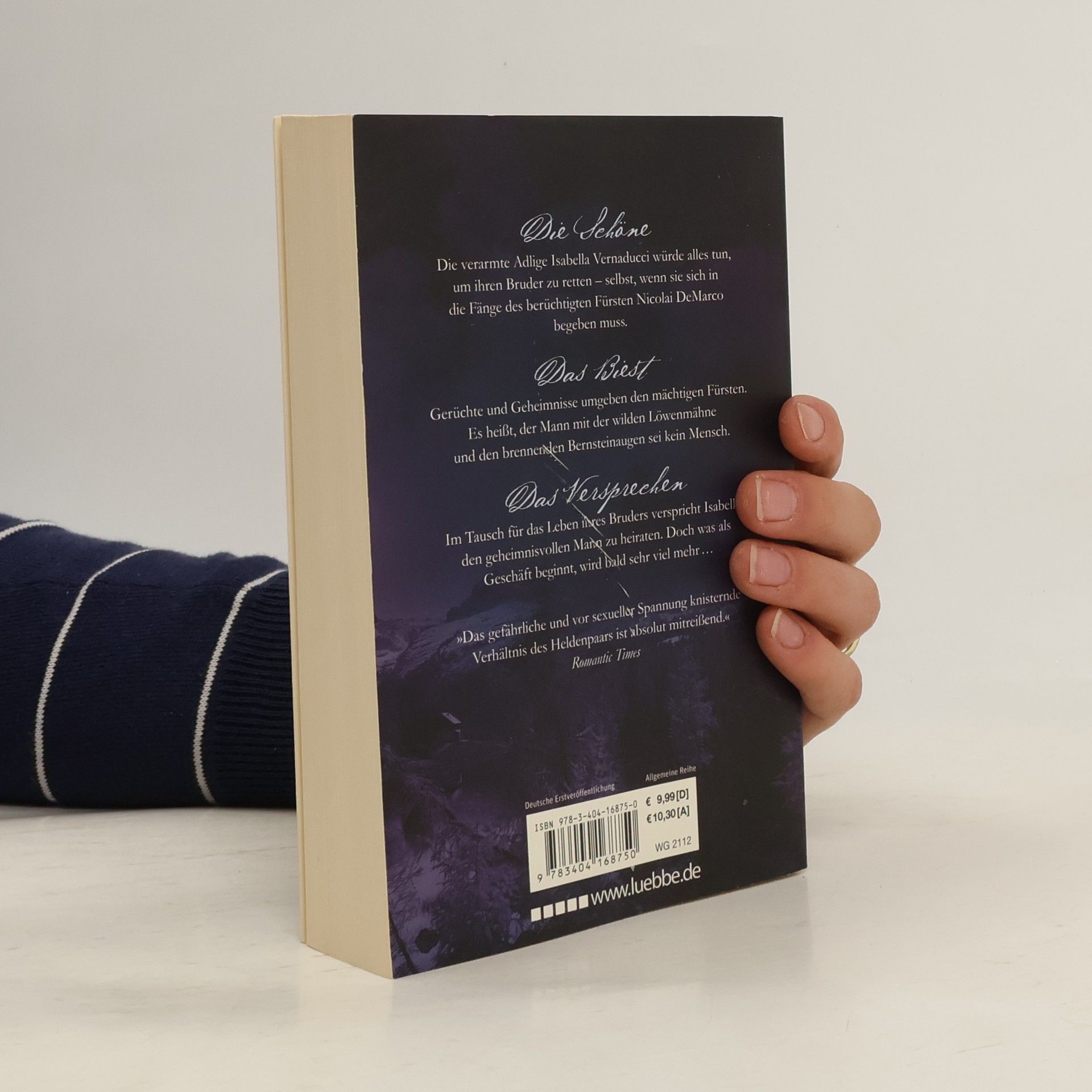 DIE SCHÖNE Die verarmte Adlige Isabella Vernaducci würde alles tun, um ihren Bruder zu retten - selbst, wenn sie sich in die Fänge des berüchtigten Fürsten Nicolai DeMarco begeben muss. DAS BIEST Gerüchte und Geheimnisse umgeben den mächtigen Fürsten. Es heißt, der Mann mit der wilden Löwenmähne und den brennenden Bernsteinaugen sei kein Mensch. DAS VERSPRECHEN Im Tausch für das Leben ihres Bruders verspricht Isabella, den geheimnisvollen Mann zu heiraten. Doch was als Geschäft beginnt, wird bald sehr viel mehr ...