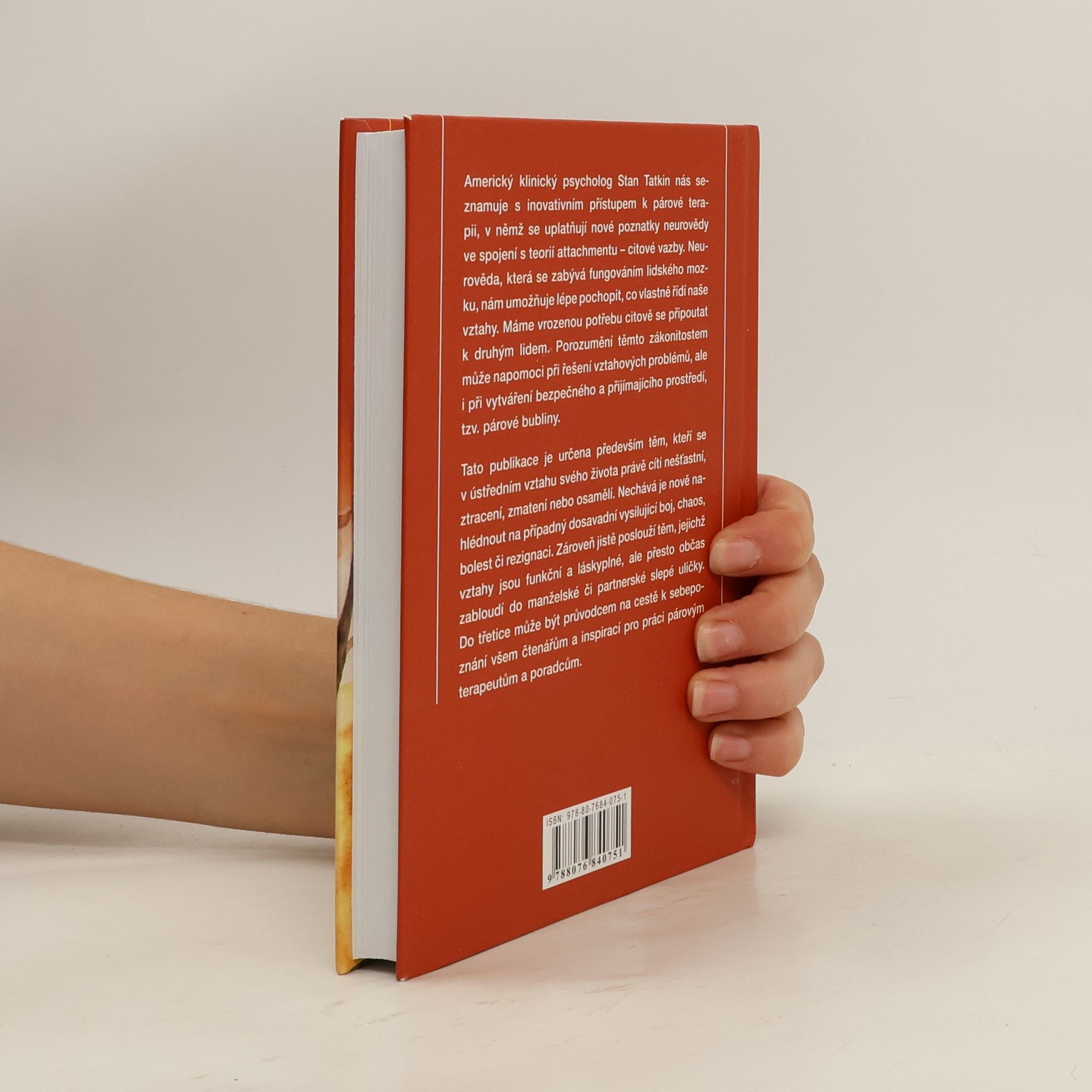 Americký klinický psycholog Stan Tatkin nás seznamuje s inovativním přístupem k párové terapii, v němž se uplatňují nové poznatky neurovědy ve spojení s teorií attachmentu – citové vazby. Neurověda, která se zabývá fungováním lidského mozku, nám umožňuje lépe pochopit, co vlastně řídí naše vztahy. Máme vrozenou potřebu citově se připoutat k druhým lidem. Porozumění těmto zákonitostem může napomoci při řešení vztahových problémů, ale i při vytváření bezpečného a přijímajícího prostředí, tzv. párové bubliny.Tato publikace je určena především těm, kteří se v ústředním vztahu svého života právě cítí nešťastní, ztracení, zmatení nebo osamělí. Nechává je nově nahlédnout na případný dosavadní vysilující boj, chaos, bolest či rezignaci. Zároveň jistě poslouží těm, jejichž vztahy jsou funkční a láskyplné, ale přesto občas zabloudí do manželské či partnerské slepé uličky. Do třetice může být průvodcem na cestě k sebepoznání všem čtenářům a inspirací pro práci párovým terapeutům a poradcům.