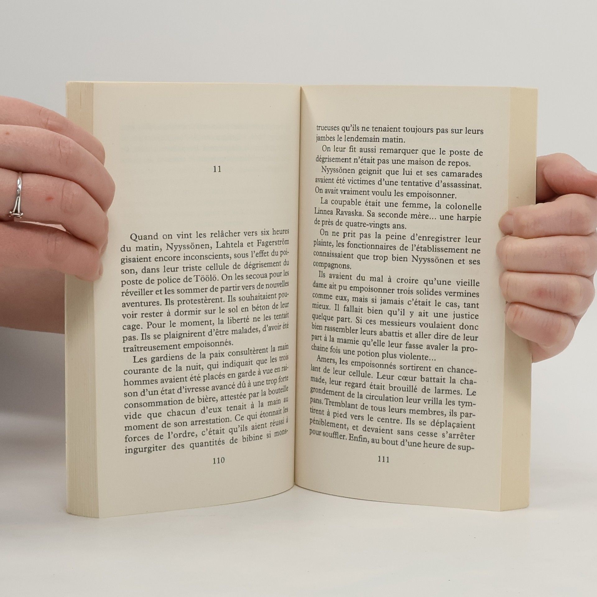 Une maisonnette rouge flanquée d'un petit sauna en bois gris, non loin d'Helsinki. Linnea, la douce veuve du colonel Ravaska, mène une existence paisible à soigner ses violettes et son chat. Pourtant chaque mois, le jour où elle touche sa pension, un trio maudit, conduit par son neveu, s'invite sous son toit pour la détrousser. Lorsque ses visiteurs ne se contentent plus de sa maigre retraite et exigent un testament à leur avantage, c'en est trop. Elle est résolue à en finir. Comprenez : à se suicider. Mais, surprise, concocter un poison mortel se révèle une activité beaucoup plus passionnante que tricoter. Et les noirs desseins de Linnea, par une suite précipitée d'événements cocasses, se retournent en sa faveur, tandis que ses ennemis... Génie du comique de situation, Paasilinna récidive avec une vieille dame tranquille candidate au suicide. Arsenic et vieilles dentelles trempé dans l'aquavit, les rocambolesques aventures de la colonelle sont l'occasion de revisiter l'univers à la fois brut, drôle et loufoque du grand écrivain finlandais.