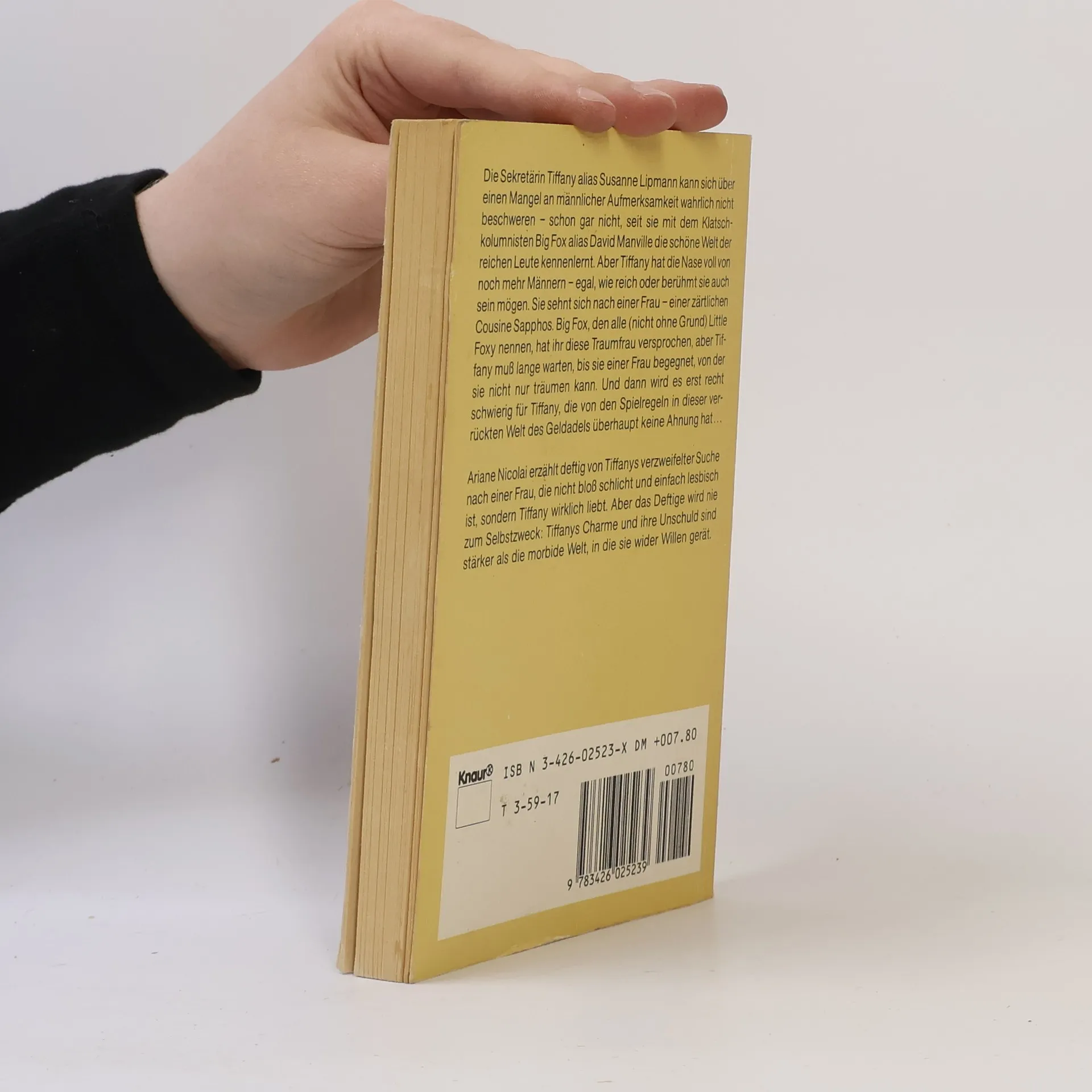 Die Sekretärin Tiffany alias Susanne Lipmann kann sich über einen Mangel an männlicher Aufmerksamkeit wahrlich nicht beschweren - schon gar nicht, seit sie mit dem Klatschkolumnisten Big Fox alias David Manville die schöne Welt der reichen Leute kennenlernt. Aber Tiffany hat die Nase voll von noch mehr Männern - egal wie reich oder berühmt sie auch sein mögen. Sie sehnt sich nach einer Frau - einer zärtlichen Cousine Sapphos. Big Fox, den alle (nicht ohne Grund) Little Foxy nennen, hat ihr diese Traumfrau versprochen, aber Tiffany muss lange warten, bis sie einer Frau begegnet, von der sie nicht nur träumen kann. Und dann wird es erst recht schwierig für Tiffany, die von den Spielregeln in dieser verrückten Welt des Geldadels überhaupt keine Ahnung hat...Ariane Nicolai erzählt deftig von Tiffanys verzweifelter Suche nach einer Frau, die nicht bloß schlicht und einfach lesbisch ist, sondern Tiffany wirklich liebt. Aber das Deftige wird nie zum Selbstzweck: Tiffanys Charme und ihre Unschuld sind stärker als die morbide Welt, in die sie wider Willen gerät.
