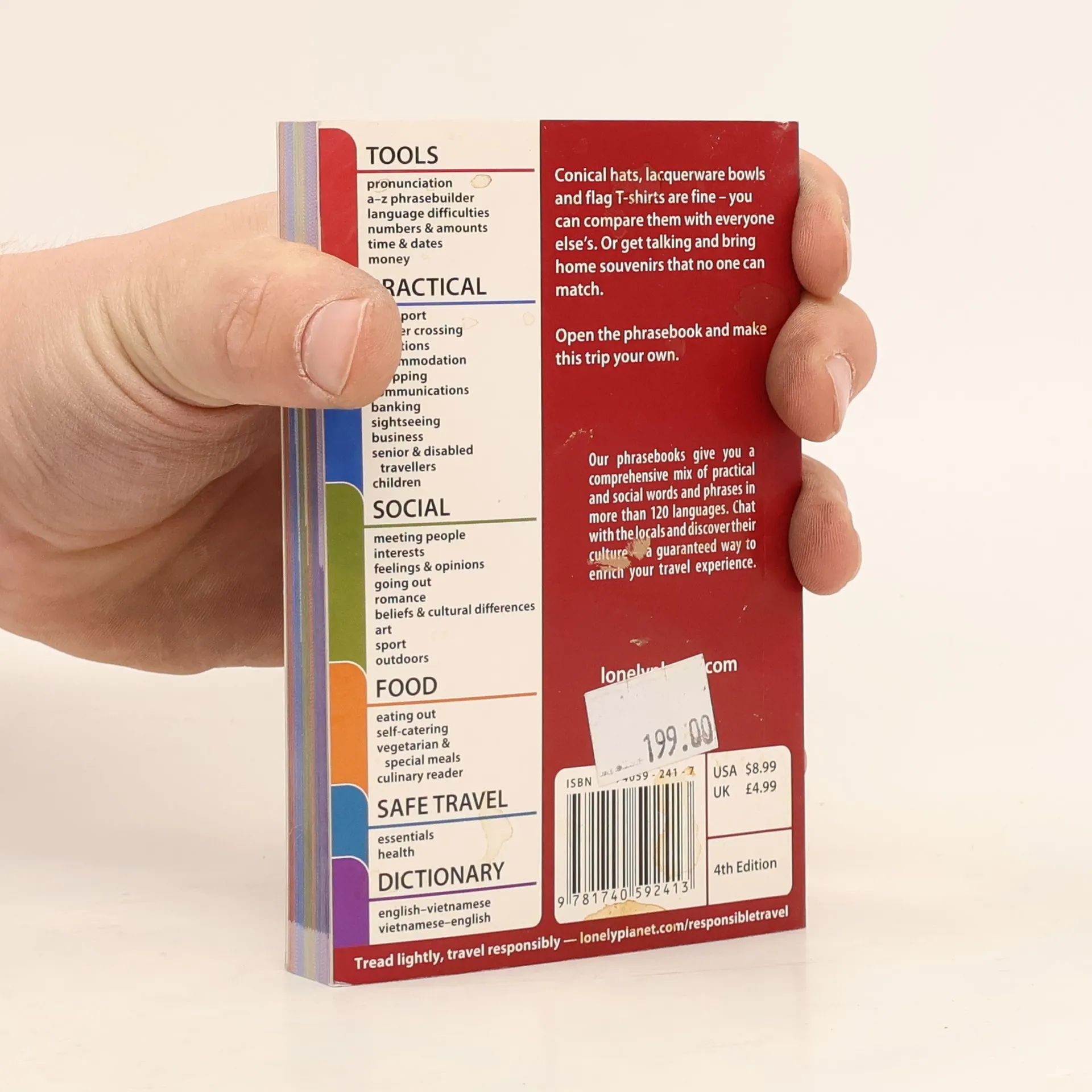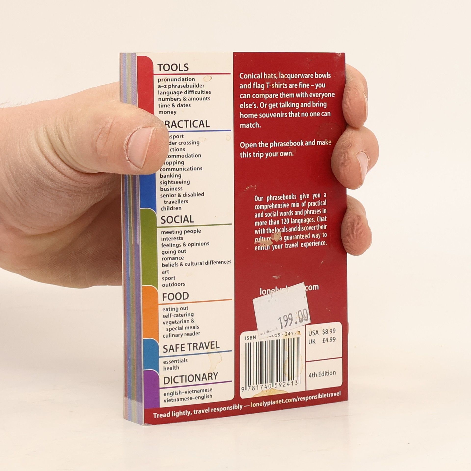 Conical hats, lacquerware bowls and flag T-shirts are fine - you can compare them with everyone else's. Or get talking and bring home souvenirs that no one can match. Open this phrasebook and make this trip your own.Our phrasebooks give you a comprehensive mix of practical and social words and phrases in more than 120 languages. Chat with the locals and discover their culture - a guaranteed way to enrich your travel experience.