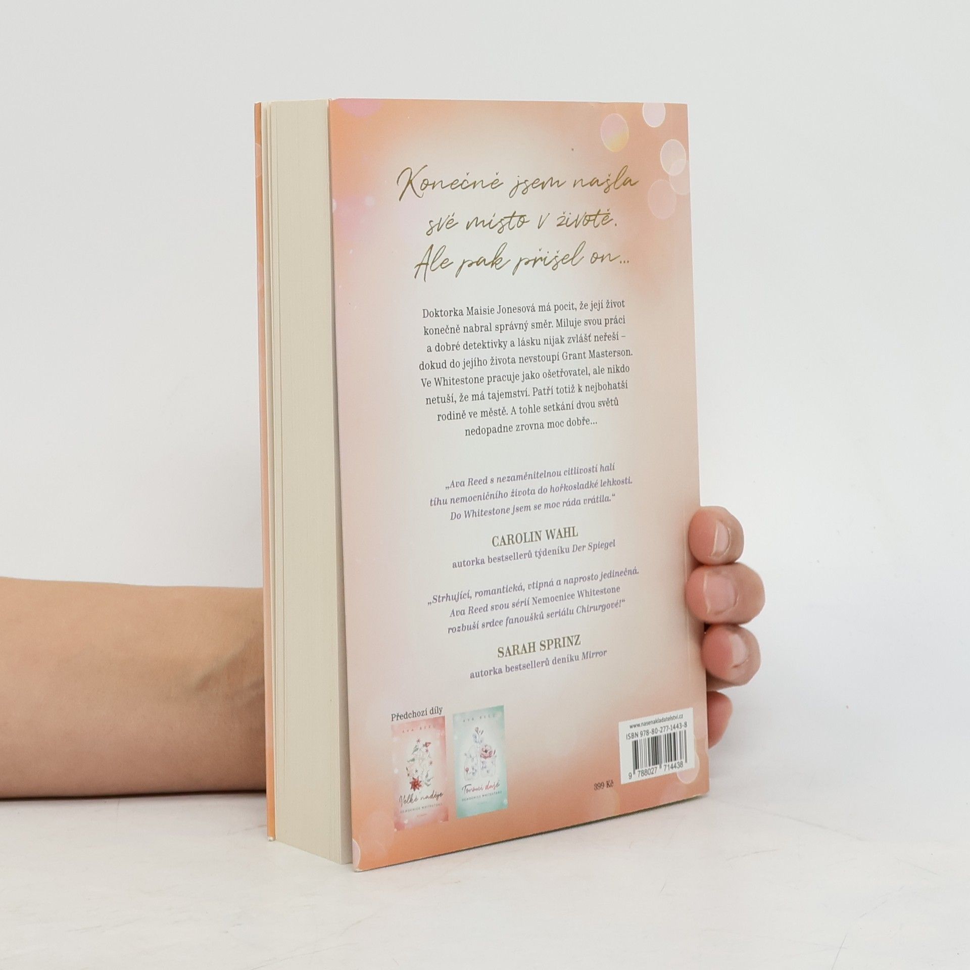 Vítejte u třetího dílu série Nemocnice Whitestone. Mezi partou lékařů, kteří zachraňují životy jiných a prožívají své lásky a přátelství. Po neštěstí v písečné bouři, kde uvízla Maisie, Sierra a Jess a která všechny ovlivnila, se život vrací do starých kolejí. Maisie Jonesová nosí každý den jiné brýle, miluje dobré detektivky a svou práci lékařky v Nemocnici Whitestone. Má tam dobré přátele a cítí, že konečně našla své místo v životě, ale Grant Masterson všechno zpřehází. Ošetřovatel, který se usmívá pokaždé, když ji vidí, a jí se trochu rychleji roztluče srdce. Maisie si s láskou nikdy moc hlavu nelámala – až dosud. A mladík, který se podobá Tomovi Hollandovi, pokaždé ji dokáže rozesmát a je dokonalý džentlmen, ji okouzlí. Když s ní pak na motorce brázdí ulice Phoenixu a ještě ke všemu ji zavede do dobrého knihkupectví, je ztracena. Ale Grant skrývá velké tajemství – nikdo neví, že patří k nejbohatší rodině ve městě. Ta jím však kvůli jeho práci opovrhuje. Maisie se ocitne ve společnosti bohatých a krásných lidí a toto setkání nedopadne dobře. Jenže to bychom nebyli v Nemocnici Whitestone, kdyby všechno probíhalo hladce…